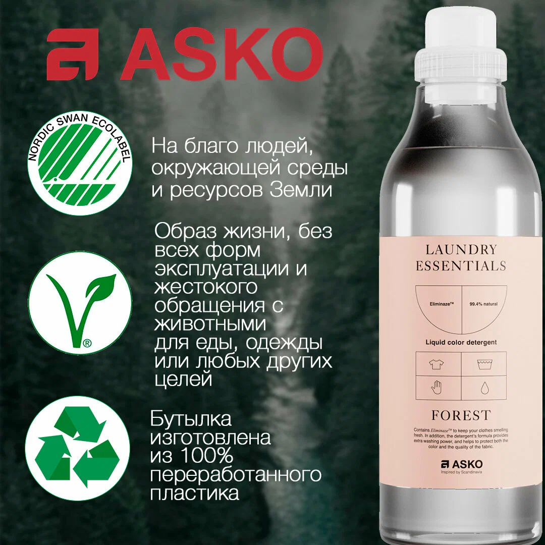 Состав: Маркировка Nordic Swan Ecolabel Vegan 6 энзимов для более эффективной стирки Устраняет запахи Без красителей, парабенов и компонентов животного происхождения Предотвращает появление катышков на одежде из хлопка и полиэстера Сохраняет цвет ткани Удаляет вор