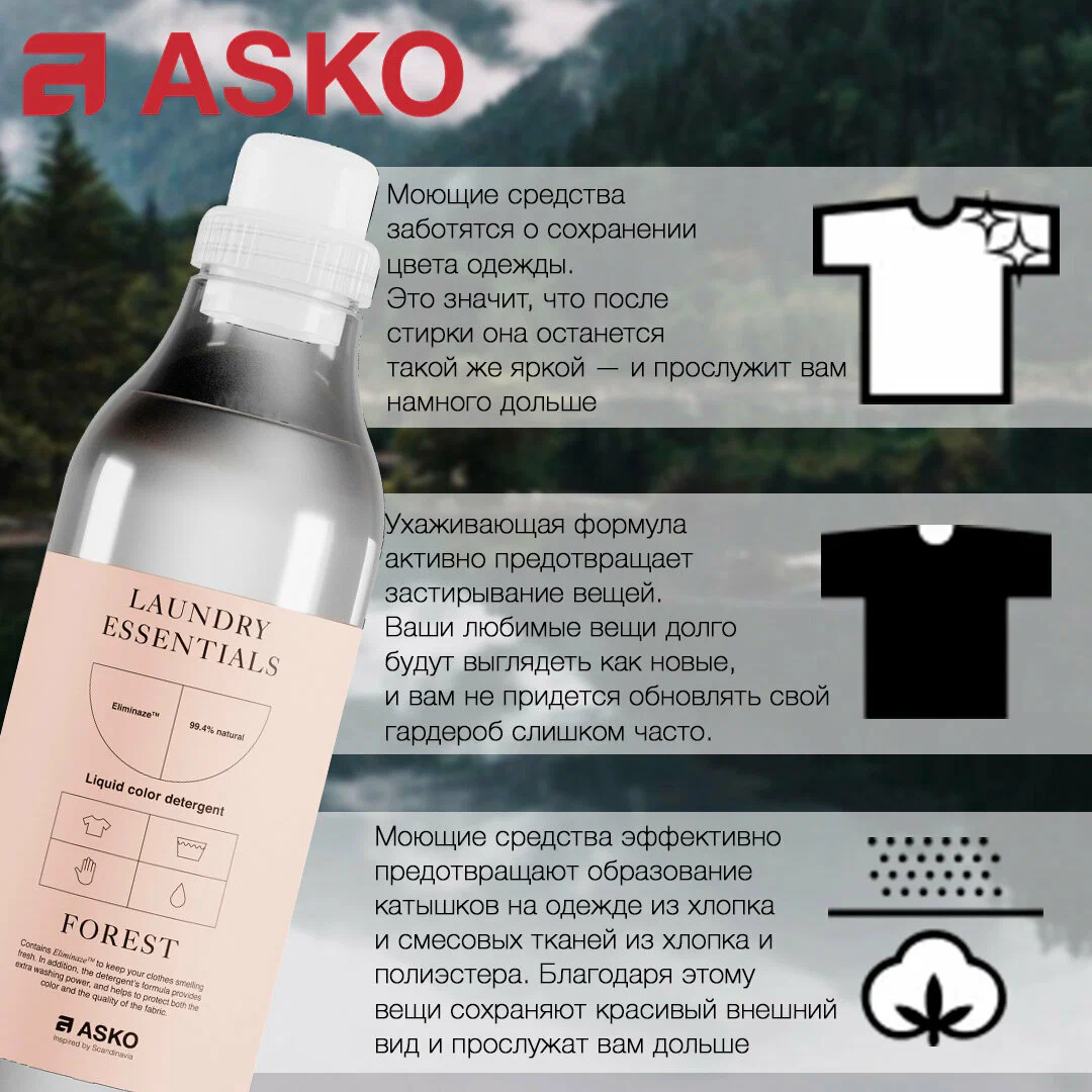Жидкое средство для стирки ASKO LC11AU Color - это идеальное решение для тех, кто ценит качество и бережный уход за своими вещами. Это средство специально разработано для стирки цветных тканей и хлопковых вещей и помогает сохранить их цвет и предотвратить появление катышек. Оно также обладает антистатическим эффектом и устраняет неприятные запахи, что делает его незаменимым помощником в доме. ASKO LC11AU Color имеет несколько преимуществ: - Снимает статическое электричество - 6 энзимов для эффективной стирки - Аромат Скандинавии - Возможность использования как для стандартной стирки, так и для автоматических систем дозирования - Экомаркировка Nordic Swan - Без красителей, парабенов, компонентов животного происхождения - Vegan - Устраняет запахи - Сохраняет цвет ткани - Предотвращает появление катышков - Удаляет ворсинки и катышки - Бережный уход ASKO LC11AU Color обладает следующими характеристиками: - Для стиральных машин - Температурные режимы: от 30 до 90 градусов Цельсия - Объем: 1 литр - Упаковка: бутылка - Тип стирки: машинный - Не содержит парабенов, искусственных красителей - Назначение: для цветных и хлопковых тканей - Страна бренда: Германия - Тип: жидкость - Аромат: природа и свежесть - Эффект: антистатический, удаление неприятных запахов. Жидкое средство для стирки ASKO LC11AU Color можно использовать для различных типов ткани, включая хлопок, полиэстер, лен и шерсть. Оно безопасно для кожи и окружающей среды, что делает его идеальным выбором для тех, кто заботится о здоровье своих близких и природе. Способ применения: Налейте необходимое количество средства в стиральную машину и добавьте белье согласно инструкции по использованию вашей стиральной машины. Для автоматической дозировки используйте систему ASKO ADS. После завершения стирки убедитесь, что весь раствор был использован. Не забывайте, что для достижения наилучших результатов необходимо соблюдать рекомендации производителя и использовать указанное количество средства.