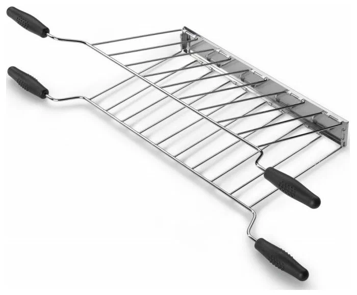 Держатель для сэндвичей Smeg TSSR02 - это аксессуар, который станет незаменимым помощником для любителей сэндвичей. Он предназначен специально для тостера Smeg серии TSF02 и совместим с другими моделями этого бренда. Держатель изготовлен из нержавеющей стали, что гарантирует его долговечность и устойчивость к коррозии. Ручки из термостойкого пластика обеспечивают комфортное и безопасное использование. Продукт имеет серебристый цвет и размеры 434x173x32 мм. В комплекте идут две решетки, что позволяет одновременно готовить два сэндвича. Держатель для сэндвичей Smeg TSSR02 подходит для использования при температуре от 10 до 99 градусов Цельсия. Это позволяет использовать его в различных условиях и при разных температурах. Выбирая держатель для сэндвичей Smeg TSSR02, вы получаете качественный и надежный аксессуар, который поможет вам наслаждаться вкусными и горячими сэндвичами каждый день.