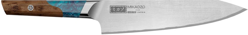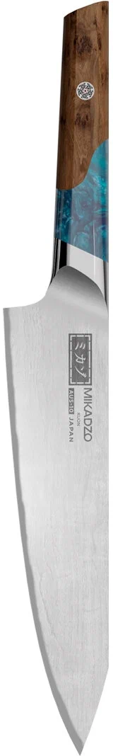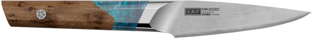Кухонный нож Omoikiri Damascus Kuon 4992038. Нож овощной, лезвие- дамасская сталь, рукоятка - пакка. Лезвие ножей Damascus Kuon перетекает в рукоятку без сварки, благодаря однородной стальной основе. Это увеличивает прочность и долговечность ножей. Именно поэтому они называются “Kuon”, что переводится как “Вечность”. Рукоятка состоит из двух частей: декоративной вставки из эпоксидной смолы, переливающегося синего цвета и деревянной основы, выполненной из березового капа (утолщенной части узлов деревьев с повышенной прочностью).