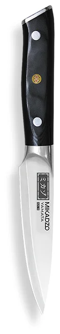 Что определяет качество кухонного ножа? Конечно, это характеристики стали, из которой он изготовлен. Для производства этой коллекции инженеры Mikadzo выбрали ванадий-молибденовую сталь AUS-10 производства корпорации Aichi Steel Works (Япония). Такой металл гарантирует стойкость заточки, твердость лезвия при различных режимах использования, а также долговечность ножа при постоянном использовании. В ножах серии MIKADZO Yamata клинок изготовлен из трех слоев различных сталей: центральный слой из молибден-ванадиевой стали AUS-10, а обкладки из нержавеющей стали SUS-410.Молибден используется как легирующая добавка, повышающая жаропрочность и коррозионную стойкость стали. Он также усиливает действие хрома в сплаве и улучшает прокаливаемость. Стали, в составе которых есть этот элемент, зарекомендовали себя с наилучшей стороны. Ванадий - элемент, способный улучшать свойства многих сплавов. Значительно повышает прочность и износостойкость стали. Нож из молибден-ванадиевой стали будет радовать своего владельца долгие годы, требуя минимума заточки и ухода.AUS-10 (Aichi Steel Works) - это сталь с оптимальным сочетанием гибкости и твердости, специально разработанная для ножевой промышленности. Она обладает чуть меньшим, чем в VG-10, содержанием углерода при схожем проценте хрома, что повышает коррозионную стойкость клинка.