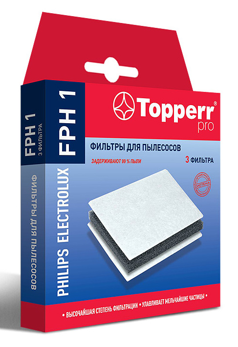 Тип: Набор фильтров Бренд: TOPPERR Модель: FPH1 1156 PartNumber/Артикул Производителя: 1156 Количество фильтров в упаковке: 3 Назначение: для пылесосов Philips, Electrolux, Bork Произведено в РФ: ДА Описание: Набор фильтров FPH 1 предназначен для пылесосов Philips, Electrolux, Bork. Моторные фильтры предотвращают попадание пыли в механическую часть пылесоса, тем самым продлевая срок службы пылесоса, сохраняют чистоту воздуха. Размер 126х126 мм. Для BORK: ДА Для ELECTROLUX: ДА Для PHILIPS: ДА Объем упаковки (ед): 0.00006 м3