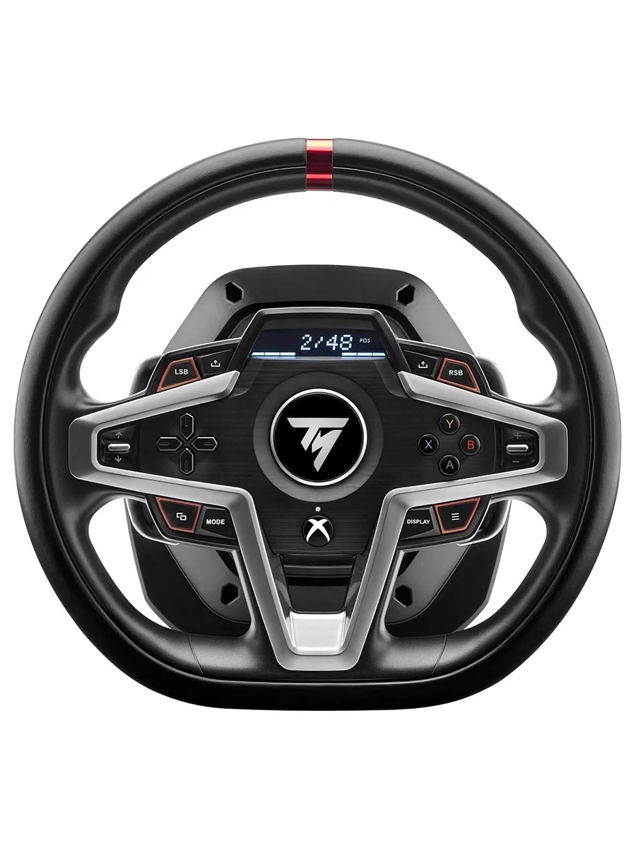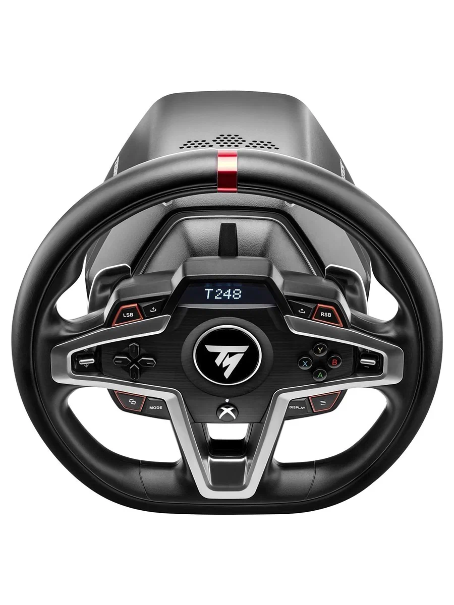 T248: гибридная система гоночного симулятора следующего поколения Thrustmaster для XBOX и ПК. Современный дизайн премиум-класса: руль с ободом, заполненным пеной и покрытым кожей, и привлекательная центральная панель T-HD (Thrustmaster Hybrid Drive): гибридная система следующего поколения с эффектом обратного сопротивления T-RDD (Thrustmaster Race Dashboard Display)
