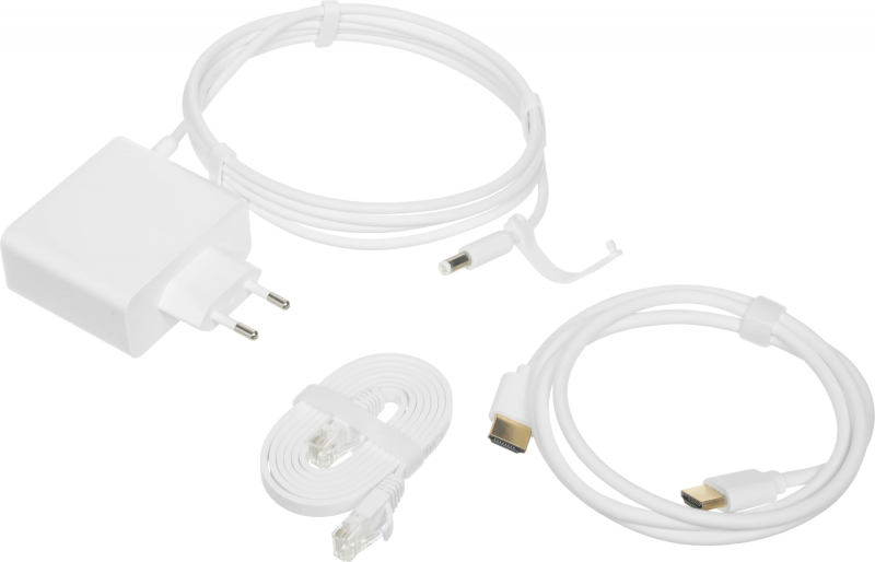 Комплектация: Яндекс Станция Макс, адаптер питания, пульт, кабель HDMI, кабель Ethernet, инструкция