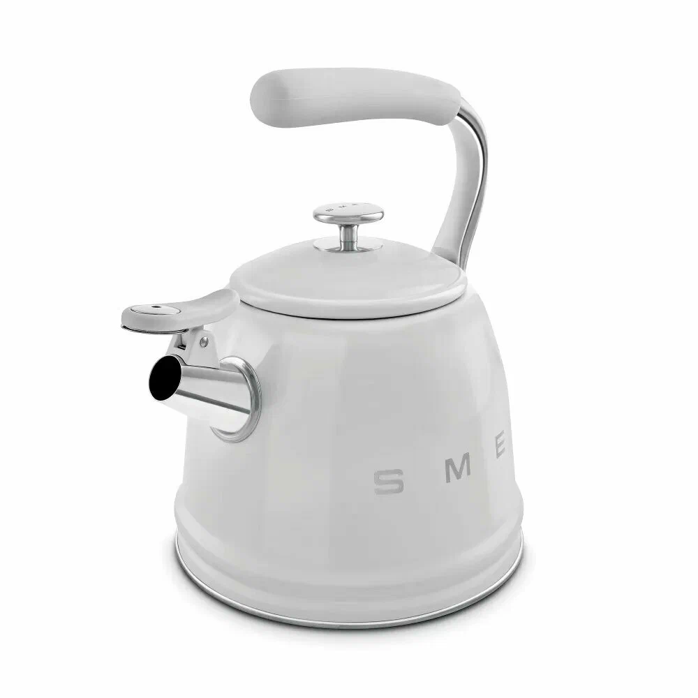 Чайник со свистком Smeg WKF01SS: стильный и функциональный Объем и функциональность Чайник Smeg WKF01SS объемом 2.3 литра предлагает достаточное количество воды для приготовления горячих напитков на большую компанию или семью. Благодаря своему объему, чайник также подойдет для использования на предприятиях общественного питания. Дизайн и материалы Чайник выполнен в стильном и современном дизайне из нержавеющей стали с хромированным покрытием. Такой материал не только придает изделию элегантный вид, но и обеспечивает долговечность и простоту ухода. Свисток на чайнике позволяет контролировать процесс кипячения воды и своевременно оповещает о готовности напитка. Это особенно удобно при использовании чайника на кухне, где есть маленькие дети или пожилые люди. Выбирая чайник со свистком Smeg WKF01SS, вы получаете стильный, функциональный и надежный аксессуар для вашей кухни.
