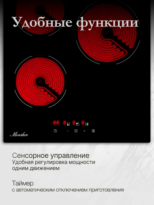 Выбирая варочную поверхность электрическую Monsher MHE 43, вы получаете надежный и функциональный прибор, который станет незаменимым помощником на вашей кухне.