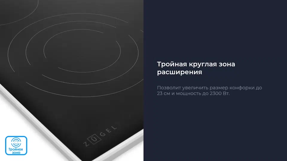 • Специальные конфорки: с овальной зоной нагрева, трехконтурная