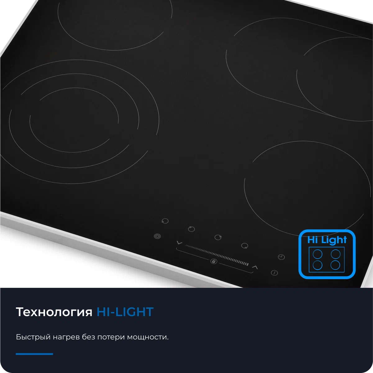 Общие данные:Габариты: 5.2х59х52 смГабариты ниши для встраивания: -х56х49 смТип конфорок: 4 быстрого нагрева Hi LightЗоны расширения: радиальная и овальнаяМощность конфорок:1 х 2300/1600/800 Вт (230/175/120 мм)1 х 1200 Вт (165 мм)1 х 2000/1100 Вт (270/165 мм)1 х 1200 (165 мм)Индикаторы остаточного тепла для каждой конфоркиУправление:Тип управления: сенсорный/слайдер9 уровней нагреваТаймерИндикация мощностиБезопасность:Защитная блокировка (защита от детей)АвтоотключениеЗащита от перегреваЗащита от переливаДополнительная информация:Высококачественная стеклокерамика Vitro Ceramic GlassМеталлическая рамка по бокамМощность: 6700 Вт