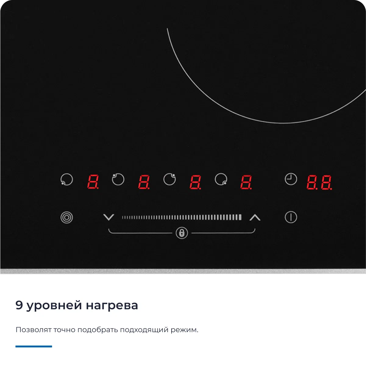 • Особенности: блокировка от детей, индикаторы остаточного тепла