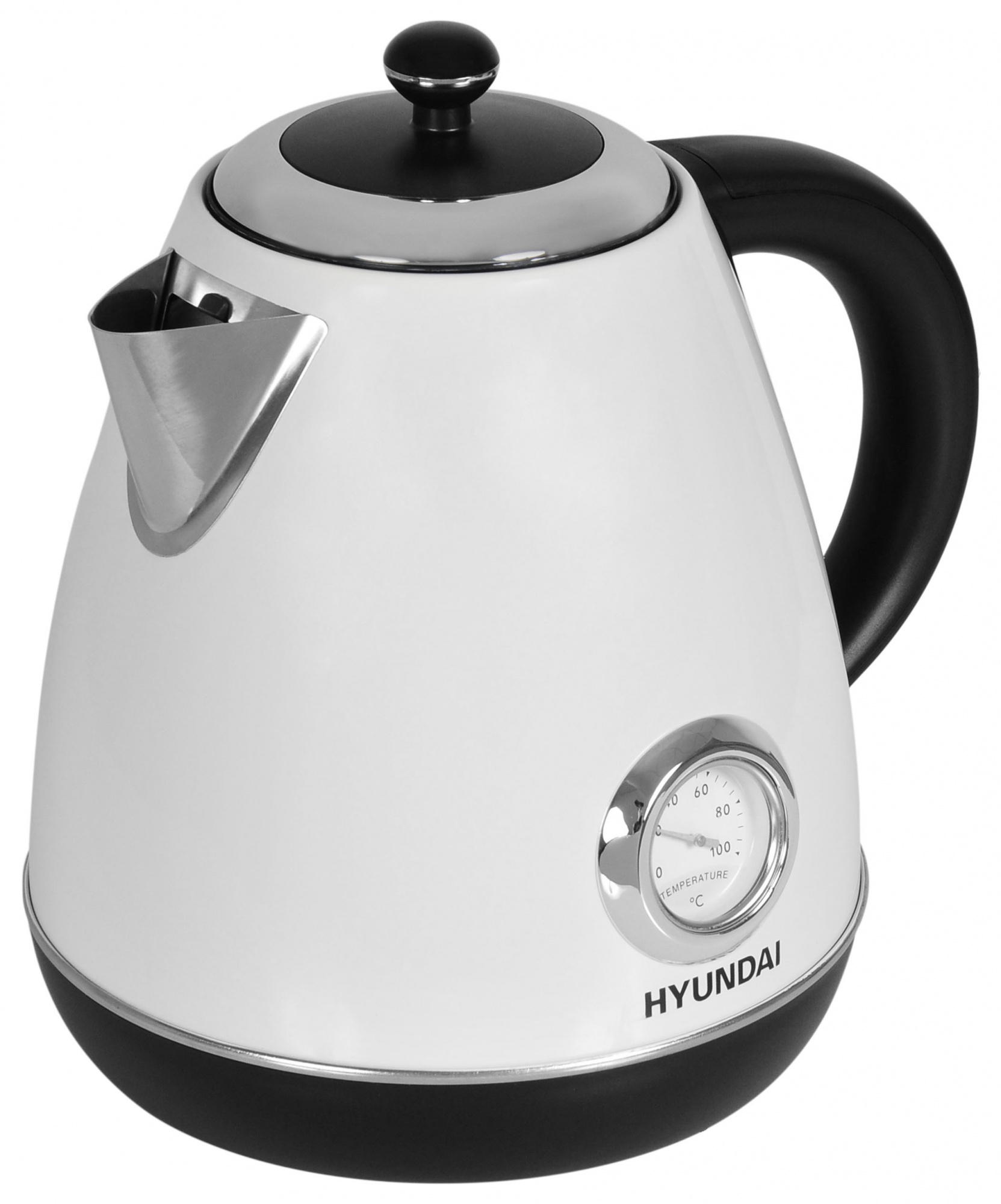 Электрический чайник Hyundai HYK-S4502 представляет собой бытовой прибор, оборудованный термометром. Благодаря точным показаниям, отображаемым стрелкой на шкале, пользователь всегда знает температуру воды. Иногда подобные сведения крайне важны в ходе приготовления еды и лекарственных средств. Круглая форма иллюминатора температурного датчика визуально подкрепляется округлой удобной ручкой. Достаточно широкий носик позволяет заполнять емкость без открывания крышки. Колба вмещает 1,7 л, сделана из специфического вида нержавейки, уверенно противостоящего таким неблагоприятным воздействиям, как окислительные процессы. Предусмотрена многоуровневая защита, исключающая преждевременный выход из строя электрочайника.