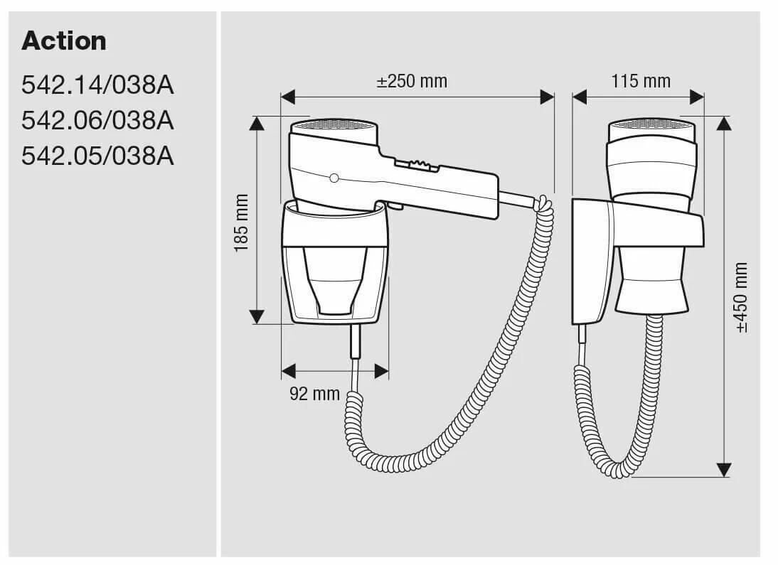 Безопасный включатель/выключатель - да Мощность1600 Вт Насадка для концентрации воздушного потока - да Настенный держатель - да Размеры (без учета длины шнура) (ВхШхГ), мм250х115х185 Режим подачи холодного воздуха - да Скорость воздушного потока2 ступени Температура воздушного потока3 уровня Страна производитель Швейцария