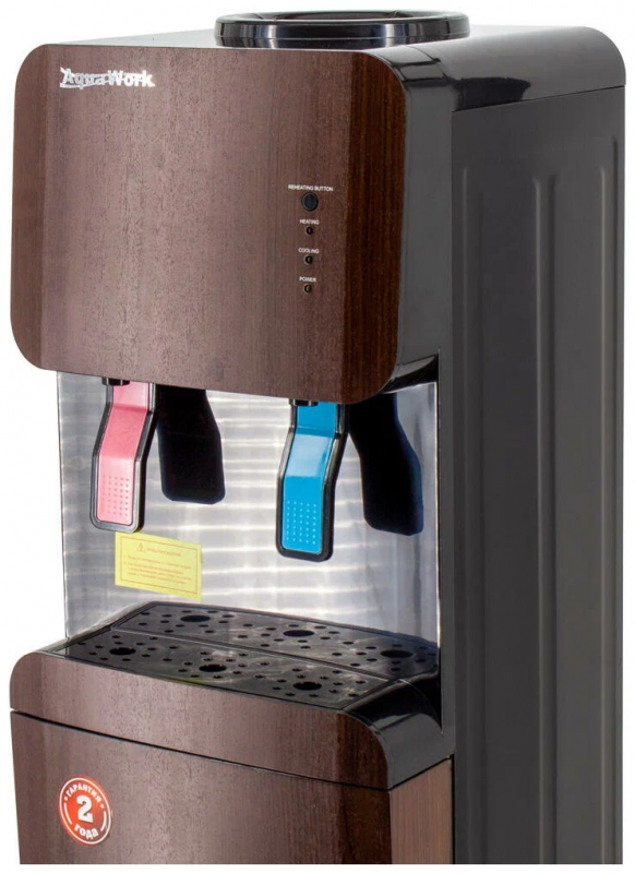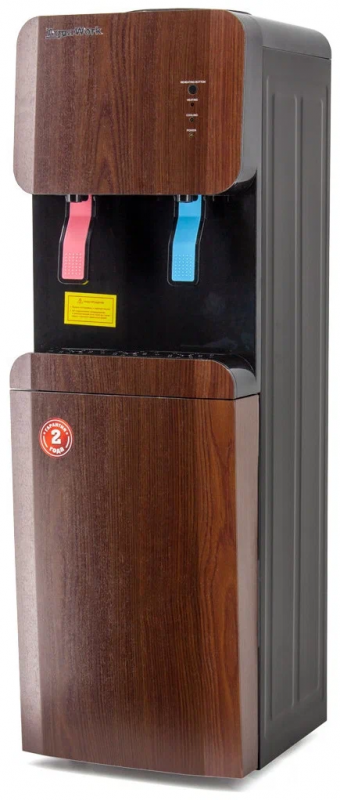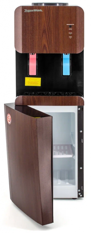 Напольный кулер для воды Aqua Work 105-LRX с нагревом, компрессорной системой охлаждения и небольшим холодильником на 20 литров.Мощность бака нагрева 700 Вт, предоставляет до 7 литров горячей воды за 1 часОхлаждение компрессором - холодная вода с температурой ниже 10 градусов, до 2 литров за часУдлиненные разноцветные педальки двух краников типа "нажим кружкой"Дополнительная кнопка принудительного нагрева - тем, кому требуется кипяток, а не обычные 85-90 градусовВысота корпуса - стандартные для напольных диспенсеров 960 ммВ нижней половине корпуса - небольшая, но полноценная холодильная камера объемом 20 литров (400х250х200 мм)Боковые поверхности диспенсера рассчитаны на использование с держателями стаканчиков на магните или двойном скотчеСветодиодная индикация нагрева и охлаждения