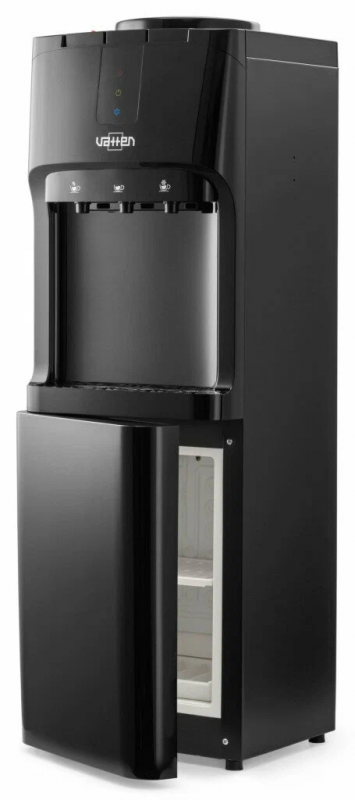 Классический напольный кулер с верхней загрузкой бутыли и минибаром. Компрессорное охлаждение и нагрев. Цвет черный. Устройство подает воду горячей, холодной и комнатной температуры. Разлив воды осуществляется нажатием на кнопку крана. Три LED индикатора (включение питания, нагрев и охлаждение). Преимущества для офиса: Наличие компрессора позволяет нагревать 6 литров воды в час, а также охлаждать воду до 5 градусов Цельсия, что актуально для обеспечения сотрудников питьевой водой разной температуры в зависимости от сезона. Оснащен холодильной камерой (минибаром) на 12 литров - в ней можно хранить бутерброды и напитки.