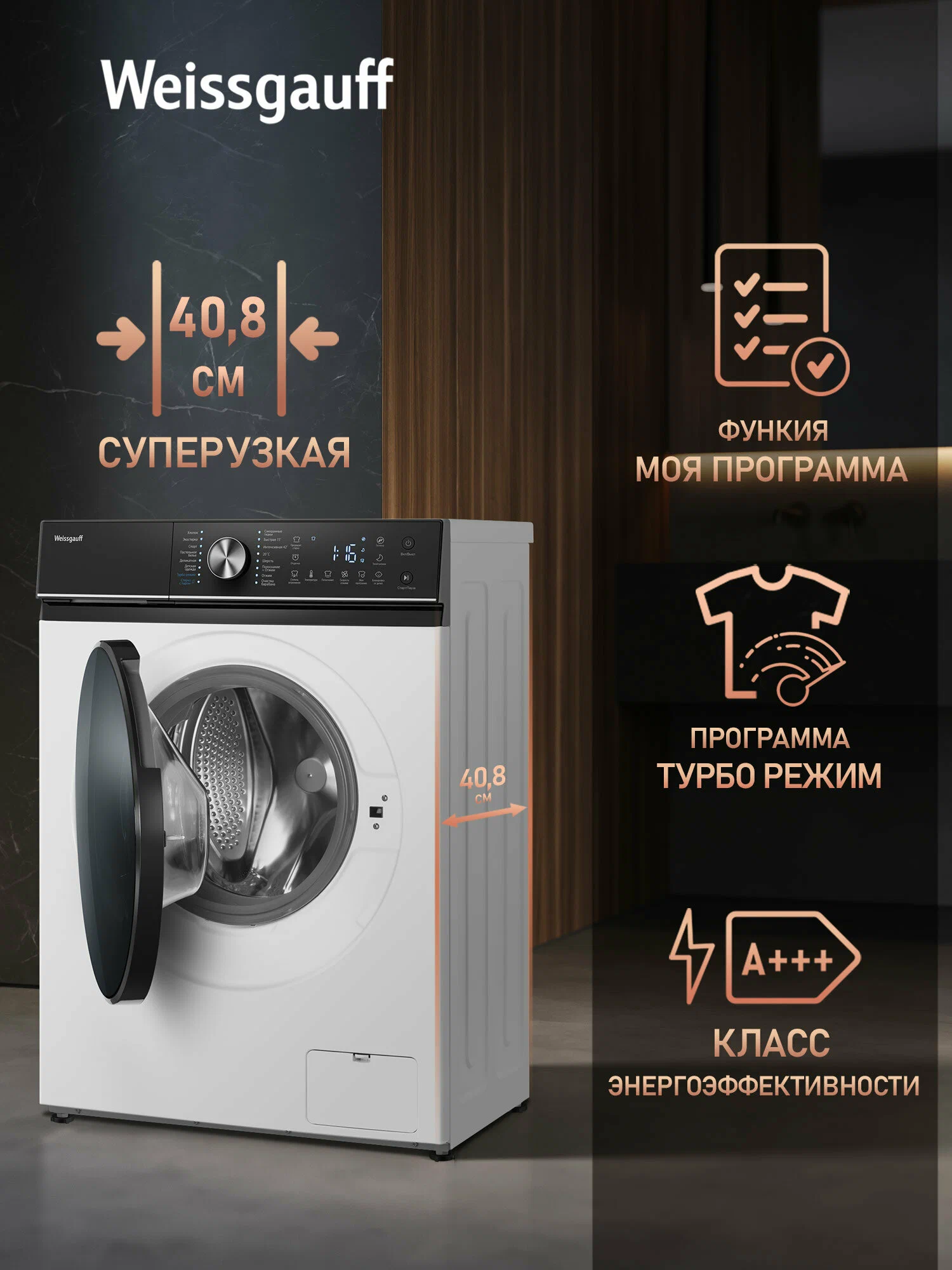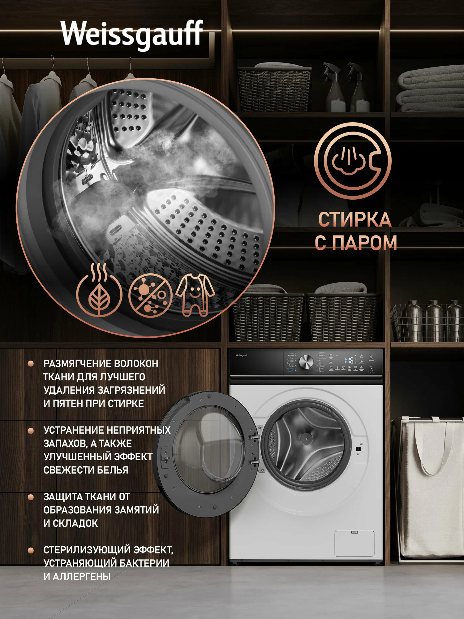 Отдельностоящая стиральная машина Weissgauff, имеющая достойные показатели загрузки до 6 кг белья и скорости отжима до 1000 оборотов в минуту, а также большой цифровой дисплей с наглядной индикацией для выбора специальных возможностей и программирования установок - это настоящее сочетание отличного качества и разумной цены!Режим "Быстрая стирка" 15 минут - это по-настоящему фантастическая программа для тех, кто умеет ценить своё время!Загрузка до 6 килограммов - это поистине впечатляющий показатель для стиральных машин, благодаря которому вы справитесь за один цикл со всем необходимым объёмом одежды.Скорость отжима до 1000 оборотов в минуту позволит существенно сократить время на дальнейшую сушку вашего белья.Режим "Детская одежда" добавляет дополнительное полоскание, что особо важно при защите нежной кожи от остатков моющего средства.Программа "Стирка с паром" в данном режиме пар может глубоко проникать в волокна ткани, эффективно устраняя бактерии и микробы, предотвращая неприятные запахи и защищая Ваше здоровье.Режим Гигиена обеспечивает высокий уровень очистки благодаря длительному нагреву и дополнительному этапу полоскания, что особенно актуально для стирки белья, требующего интенсивной, противоаллергической и гигиенической очистки при высокой температуре.Функция "Моя программа" позволит создать и сохранить в память машины новый режим работы с бельём, на основе выбранных вами параметров.Класс энергоэффективности A+++ позволяет с уверенностью говорить о том, что данная стиральная машина обеспечит отличный результат при каждой стирке белья, затрачивая при этом минимум электроэнергии.Таймер отложенного старта, благодаря которому вы сами можете выбирать время начала работы с отсрочкой от 0 до 24 часовРежим очистки барабана обеспечит максимальную простоту в уходе за стиральной машиной, сохраняя ваше время и силы для более важных дел.Блокировка от детей защитит вашу стиральную машину от незапланированного включения детьми или случайного включения при очистке панели управления.Тихий режим станет идеальным решением для стирки в ночное время. После его активации все электронные звуковые сигналы будут отключены, позволяя запустить программу стиральной машины без дополнительных звуковых уведомлений.