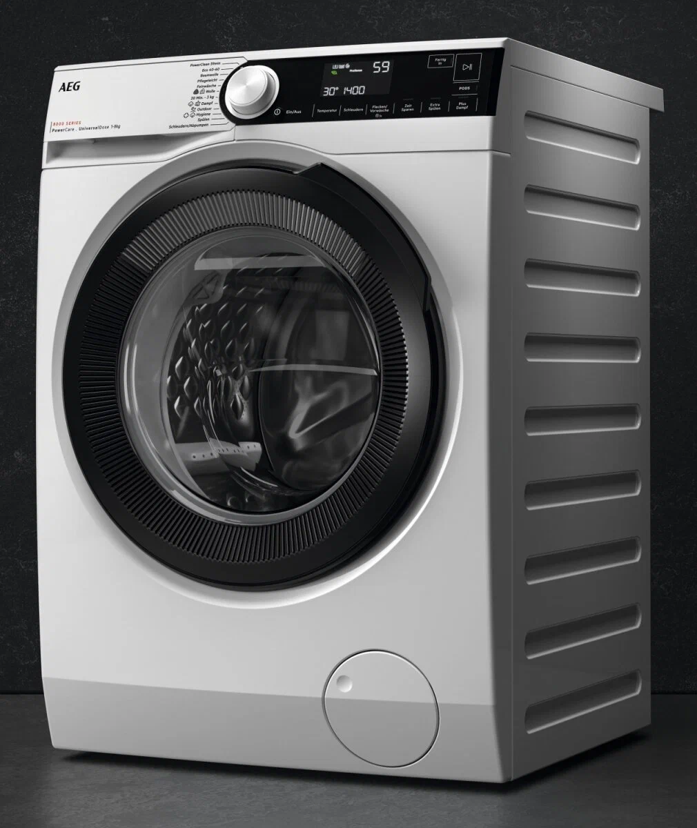 Стиральная машина AEG LFR83844VE — отдельностоящий фронтальный прибор для дома, объединяющий стиль и продуманные технологии. Внешний вид выполнен в классическом белом цвете с контрастным черным люком, что делает устройство лаконичным и современным. Габариты 85×60×60 см соответствуют стандартному месту в прачечной или на кухне, а высота 85 см обеспечивает удобство загрузки и эксплуатации без лишних наклонов.