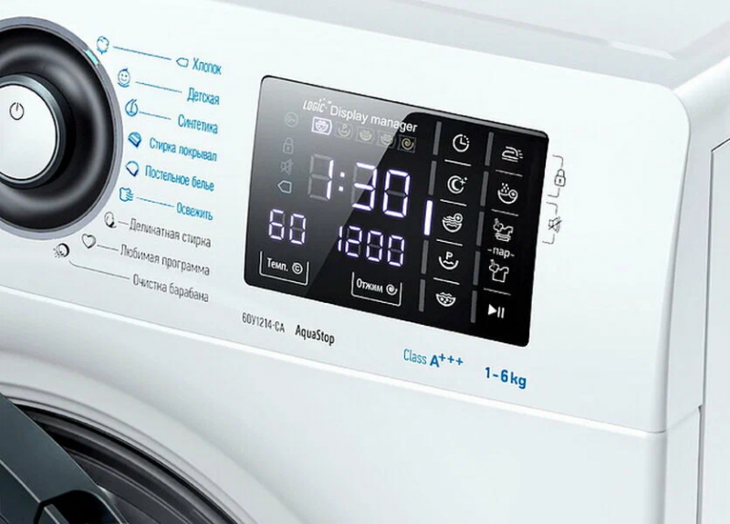 Дополнительные функции: выбор скорости отжима, выбор температуры стирки, отложенный старт, очистка барабана