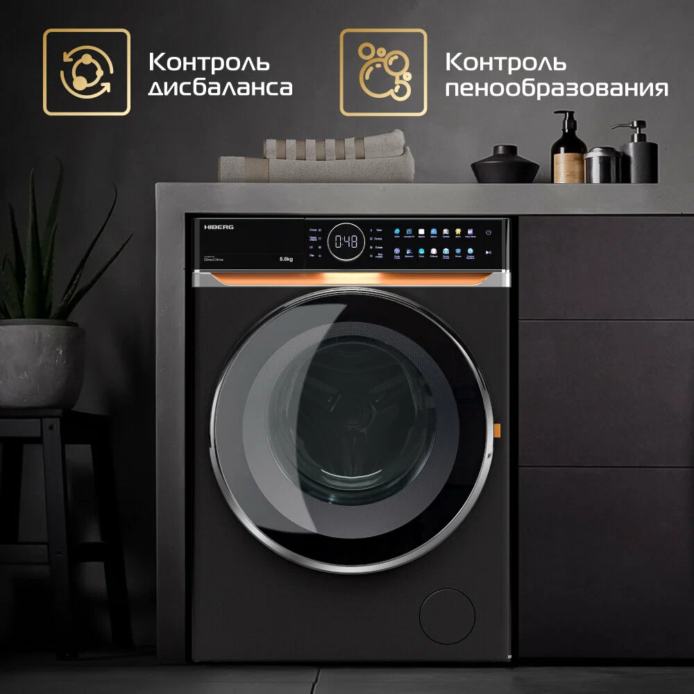 Стиральная машина HIBERG i-DDQ10-814 B - это современное и функциональное устройство для стирки, которое обеспечивает высокое качество стирки и бережное отношение к тканям.Стиральная машина оснащена инверторным мотором и системой прямого привода, что обеспечивает практически бесшумную работу двигателя и повышенную устойчивость конструкции. Благодаря этому, двигатель стиральной машины не нуждается в техническом обслуживании и периодической смазке, а производитель предоставляет 10-летнюю гарантию на инверторный мотор.Сенсорное управление с механическим диском позволяет выбрать необходимую программу с предустановленными настройками, отрегулировать температуру и скорость отжима. На цветном LED-дисплее световой индикацией отражается вся информация по выбранной программе и типу стирки, таймер, температура воды, скорость отжима, количество циклов полоскания, время отложенного старта и код ошибки.Стиральная машина имеет 14 автоматических программ, включая деликатные ткани, блузки и рубашки, нижнее белье, детские, спортивные и шерстяные вещи, а также одеяла и пуховики. В ней также есть функция "АкваСтоп", которая защищает от протечек и перелива, гарантируя полную безопасность во время стирки.Модель выполнена в современном дизайне и имеет черный цвет. Высота корпуса составляет от 81 до 85 см, а глубина корпуса - 56-60 см.Стиральная машина HIBERG i-DDQ10-814 B - это надежное и функциональное устройство для стирки, которое обеспечит высокое качество стирки и бережное отношение к тканям.