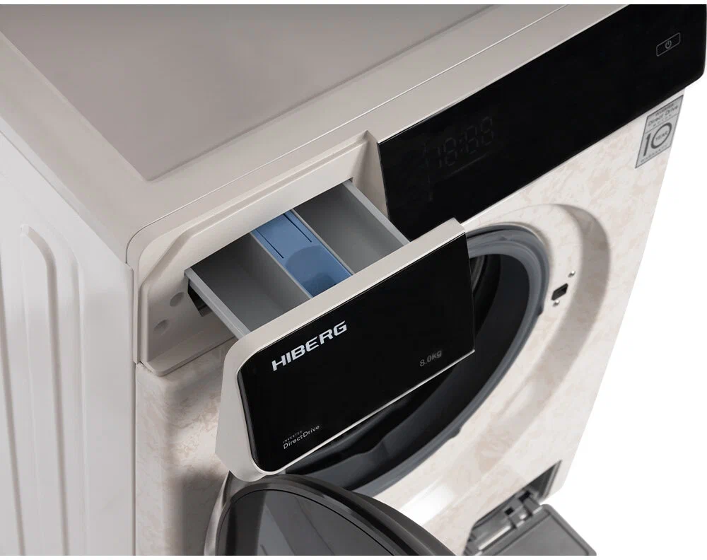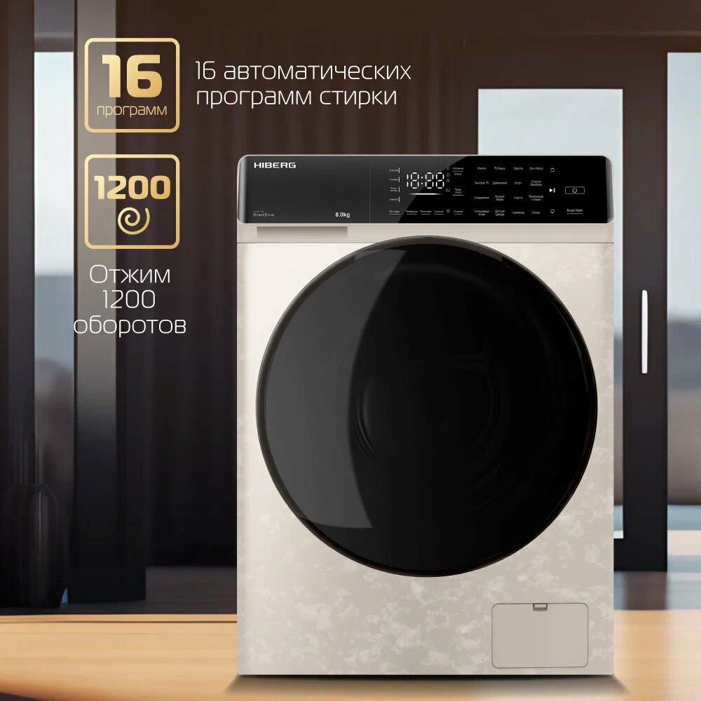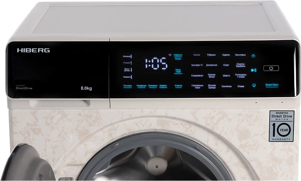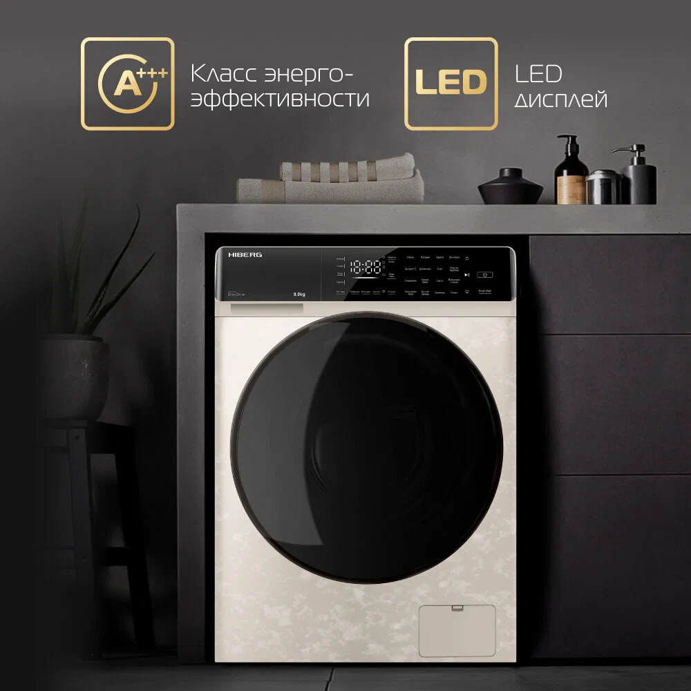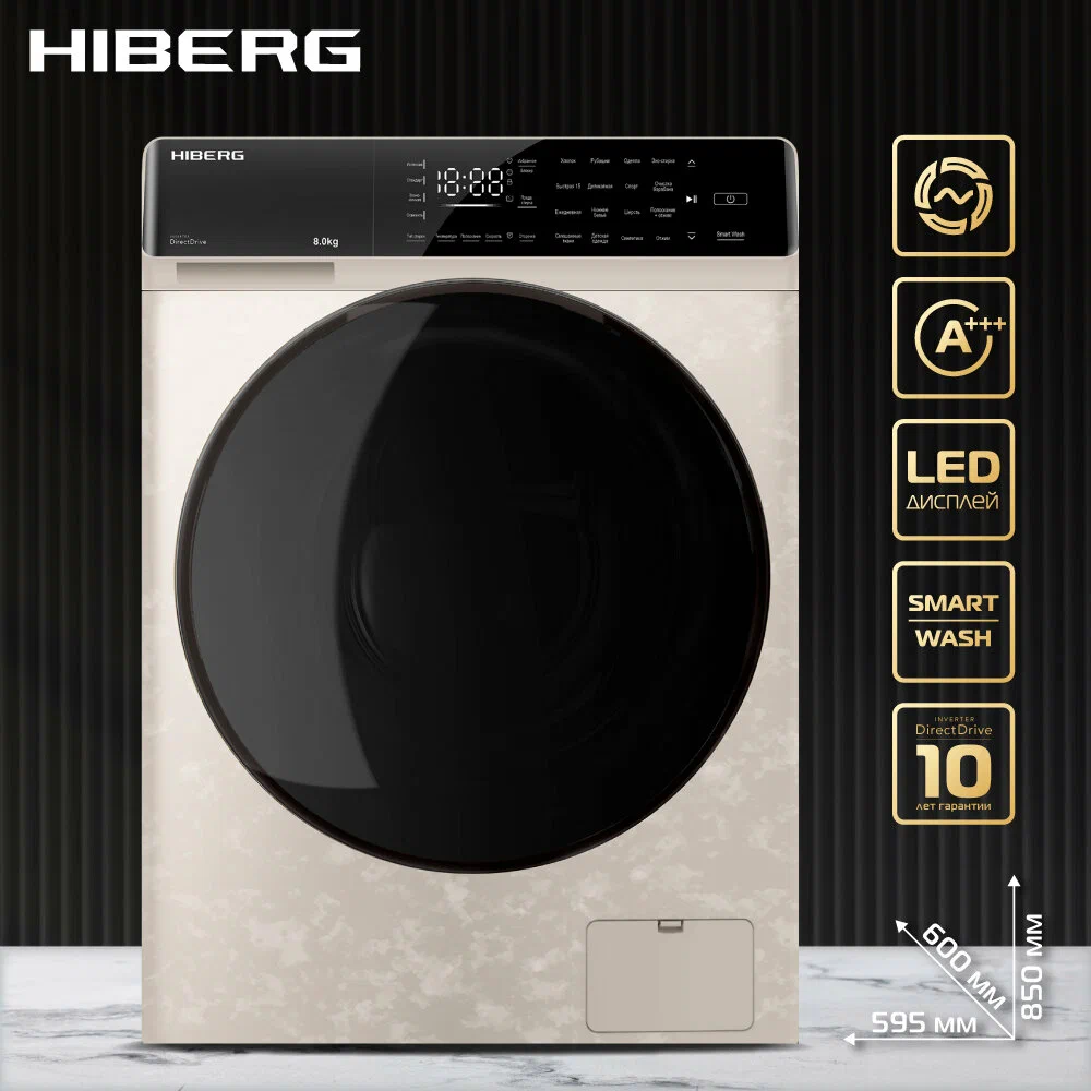 Стильная машина HIBERG i-DDQ9 - 812 с инверторным мотором и фронтальным типом загрузки с легкостью отстирает до 8 кг сухого белья.Высший класс энергоэффективности А +++ способствует низкому потреблению воды и электричества. Машинка с объемом барабана 58 л потребляет до 55 л воды за цикл стирки с максимальной скоростью отжима 1200 оборотов в минуту. Инновационная особенность внутреннего строения машинки – прямой привод. Двигатель прикрепляется к барабану машинки без использования ременной передачи, что влияет на практически бесшумную работу и повышенную устойчивость конструкции.С помощью электронного типа управления и LED-дисплея со световой индикацией можно выбрать необходимую программу с предустановленными настройками, отрегулировать температуру и время стирки.Датчик контроля пенообразования подаст сигнал машине, чтобы насос откачал лишнюю пену с барабана, тем самым повышая качество полоскания и во избежание выхода машинки из строя. Функция контроля дисбаланса предотвращает сильные вибрации во время отжима, благодаря вращению барабана в разных направлениях для равномерного распределения белья во время стирки.Стиральная машина HIBERG i-DDQ9 - 812 имеет 16 автоматических программ. Вы можете стирать деликатные ткани, отдельно темные и цветные, блузки и рубашки, спортивные, детские и шерстяные вещи и даже одеяла. Кроме того, стиральная машина оснащена режимом быстрой стирки для слабозагрязненных вещей длительностью 15 минут.«ЭКО-стирка» применятся только при использовании средств, содержащих энзимы.«Smart wash» - интеллектуальная программа стирки, которая позволяет отстирывать даже самые стойкие загрязнения, определяя вес белья и сочетая различное время и температуру.Возможность отложить старт на определенный период от 1 до 24 часов, позволяет запустить машинку в более удобное время.Кроме того, можно установить избранную программу – часто используемый режим стирки с заданными дополнительными функциями и параметрами стирки.К полезным функциям можно также отнести: дополнительное полоскание, предварительная стирка, возможность дозагрузки белья и «Замок от детей».Барабан выполнен из прочной высококачественной нержавеющей стали с функцией самоочистки, а его специальный рельеф обеспечивает тщательную и бережную стирку. Наличие разборного бака в стиральной машине упрощает сервисный ремонт и дает возможность заменять отдельные детали при их износе без необходимости замены бака полностью. Для удобства использования, барабан имеет собственную подсветку. Она включается при установке программы или функции, при смене этапа стирки, и открытии дверцы. Стиральная машина оснащена функцией "АкваСтоп", которая при необходимости прекратит подачу воды через шланг. Корпус машинки защищен от протечек и перелива, что гарантирует полную безопасность во время стирки.
