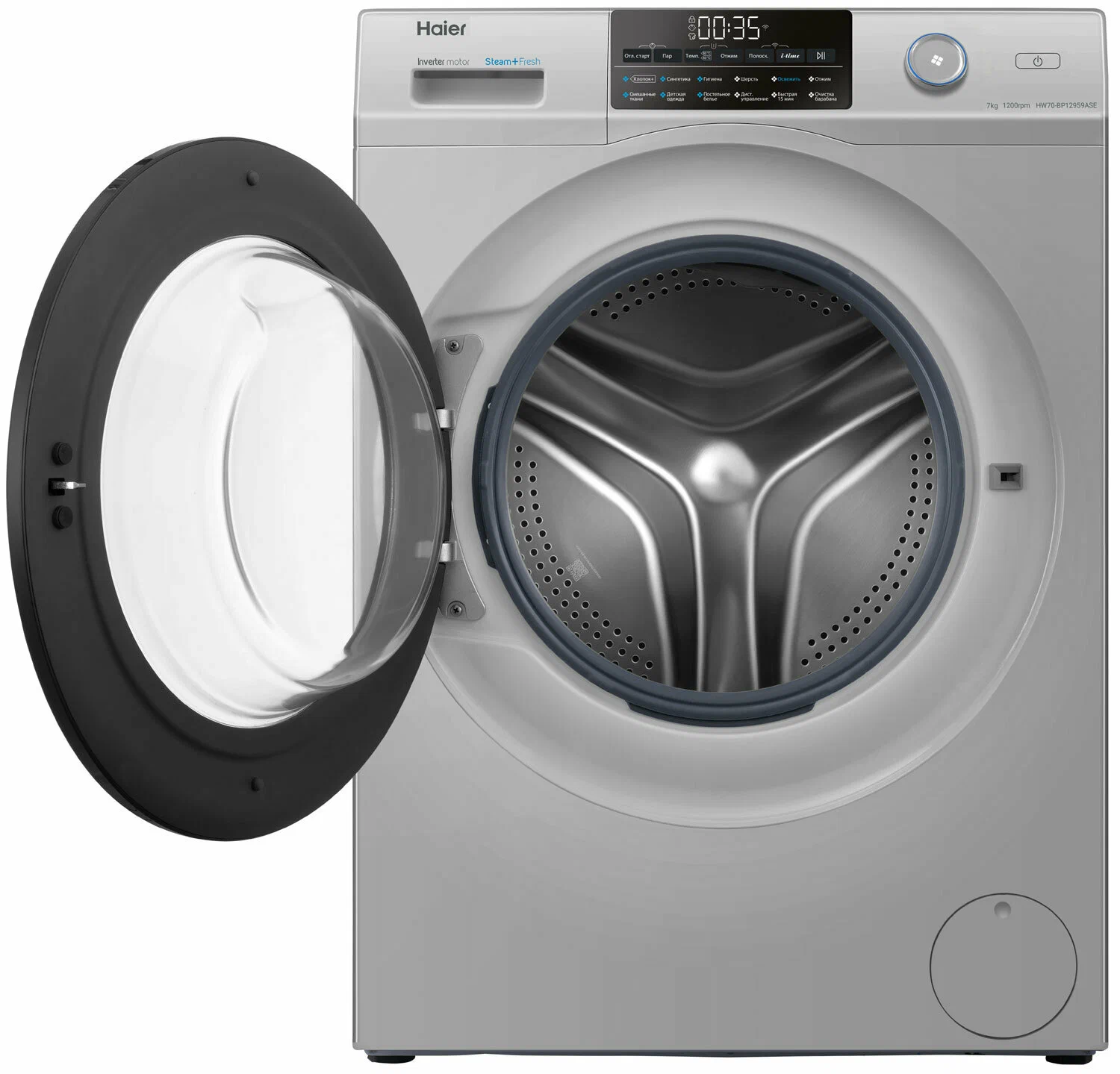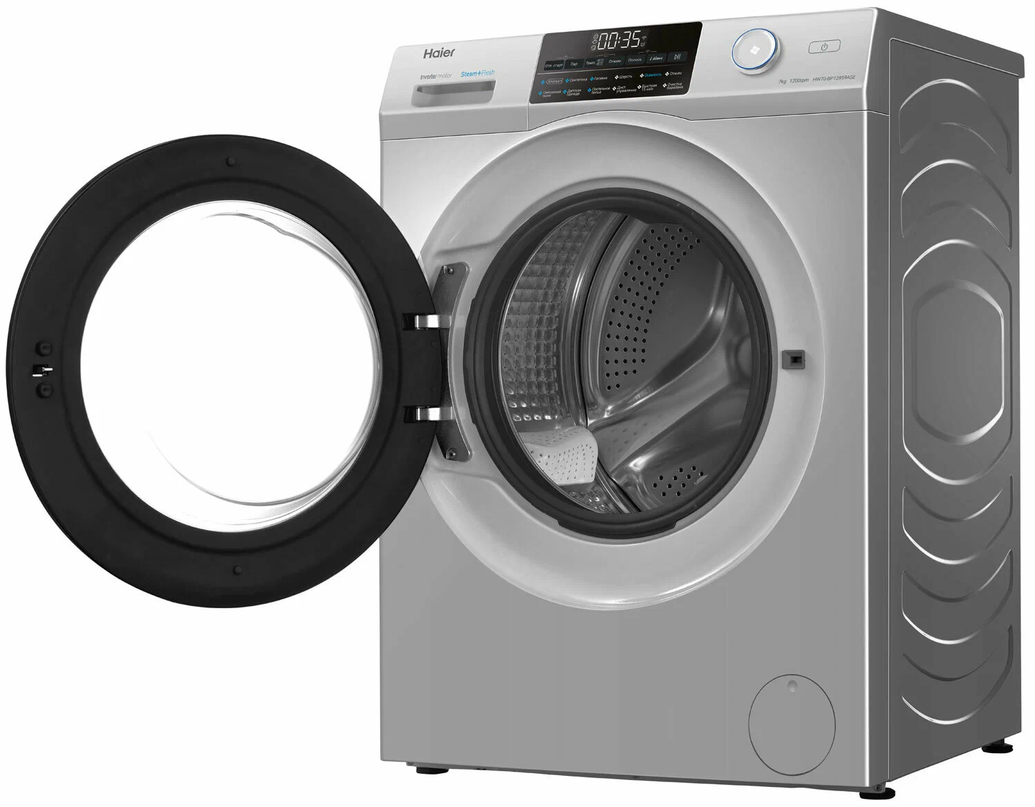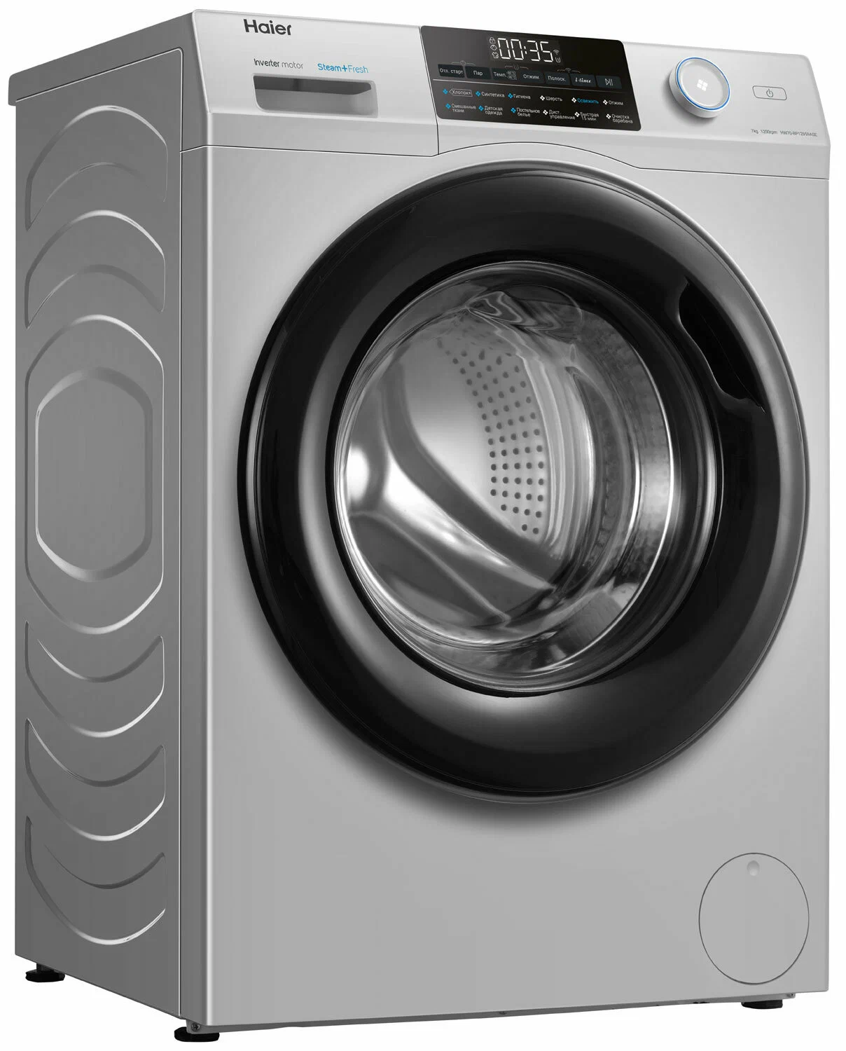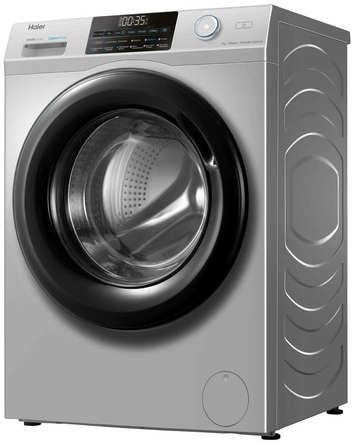 Особенности:Поддержка мобильного приложения EVOУправляйте вашей стиральной машиной и отслеживайте статус стирки удаленно. С помощью EVO расширьте выбор программ стирки: в приложении доступны эксклюзивные программы, которых нет на контрольной панели.Инверторный мотор с гарантией 12 летСовременный бесщёточный мотор: тихий и долговечный, благодаря уменьшению точек трения. Инверторный контроль мощности снижает расход электроэнергии. Гарантия - 12 лет.Шланг с AquastopСохранит ваше спокойствие во время стирки. Больше нет необходимости находиться дома, пока идет стирка. Электромагнитный клапан блокирует подачу воды, если шланг негерметичен.Барабан PillowВнутренняя поверхность стирального барабана имеет форму подушечек. Ткань легко скользит по ним - вещи стираются очень бережно, но эффективно. Даже самые деликатные.Smart Dual SprayМанжета и внутренняя поверхность стекла дверцы люка всегда остаются чистыми, благодаря автоматическому промыванию направленными струями воды.Программа освежения паромЛюбая одежда, даже та, которую нельзя стирать в стиральной машине, будет приведена в порядок: пар удалит запахи, вернет прежнюю форму и разгладит складки.Основные сведения:Габариты: 85x59.5x45.4 смМаксимальная загрузка: 7 кгСкорость отжима: 1200 об/минКласс стирки: AКласс отжима: BКласс энергопотребления: A+++Программы:ОсвежитьСинтетикаСмешанные тканиШерстьДетские вещиОтжимХлопокГигиенаБыстрая 15 минПостельное бельеОчистка барабанаДополнительные функции:Стирка с паромОтложенный старт: 0.5-24 чАвтовзвешиваниеФункция i-timeТаймерДиапазон регулировки скорости отжима: 0-400-600-800-1000-1200Температура (°C): Холодная-20-30-40-60-90Регулируемый термостат: 0-20-30-40-60-90Дозагрузка белья во время работыФункция памятиДополнительное полосканиеПредварительная стиркаУправление и индикация:Управление: СенсорноеДисплей LEDСтарт/Стоп/ПаузаБезопасность:Блокировка от детейАквастопЗащита от протечек: Шланг с AquastopДополнительная информация:Ширина х Высота х Глубина по крышке, см: 59.5 х 85 х 39.4Ширина х Высота х Глубина в упаковке, см: 65 х 89.5 х 53.1Глубина с учётом открытой дверцы, см: 93Диаметр барабана, мм: 525Уровень шума цикла стирки дБ (А): 54Уровень шума цикла отжима дБ (А): 74Объем барабана (л): 45.35Материал барабана: Нержавеющая стальНоминальное напряжение/Частота тока: 220~240 В / 50 ГцПотребляемая мощность/Максимальный ток потребления: 1950 ВтЭнергопотребление (кВтч/г): 122Потребление воды (Л/г): 8203Инверторный двигательМанжета люка: AВT технология (защита от микробов)Лоток с АВТ покрытиемДиаметр дверцы (см): 36Входные отверстия для горячей/холодной воды: Нет/ДаПередние/задние регулируемые ножкиТип барабана: Pillow