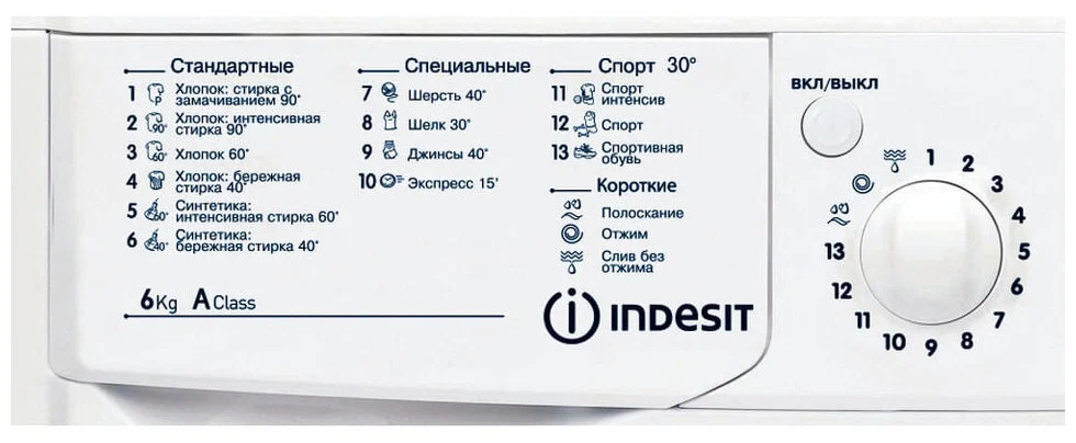 • Программы: быстрая стирка, дополнительное полоскание, стирка джинсов, стирка синтетики, стирка спортивной обуви, стирка спортивной одежды, стирка хлопка, стирка шелка, стирка шерсти, удаление пятен