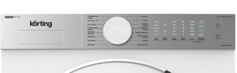 На дисплее поворотного регулятора отображаются следующие параметры: Температура (в случае, если нагрев не выбран, отображается символ «--»); Скорость отжима; Оставшееся время (время отложенного старта); Коды ошибок и др.