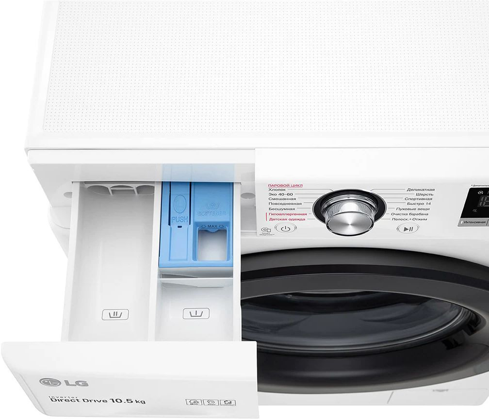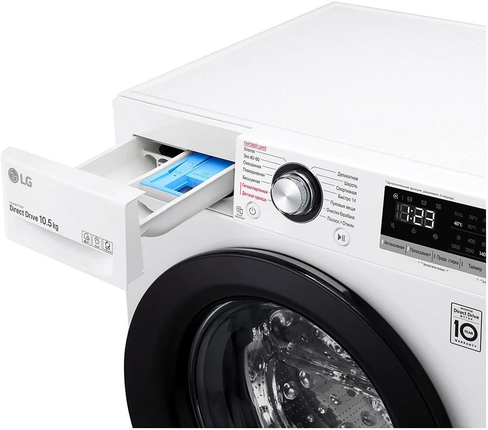 Особенности: Интеллектуальная система AI DD. Технология "6 движений заботы" 6 Motion. Функция пара Steam. Мобильная диагностика SmartDiagnosis. Совместимость с мини-барабаном. Автобалансировка. Детектор загрузки. Автоперезапуск. Инверторный мотор с прямым приводом. Фун