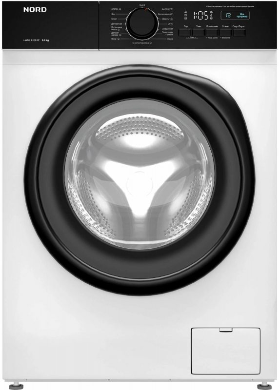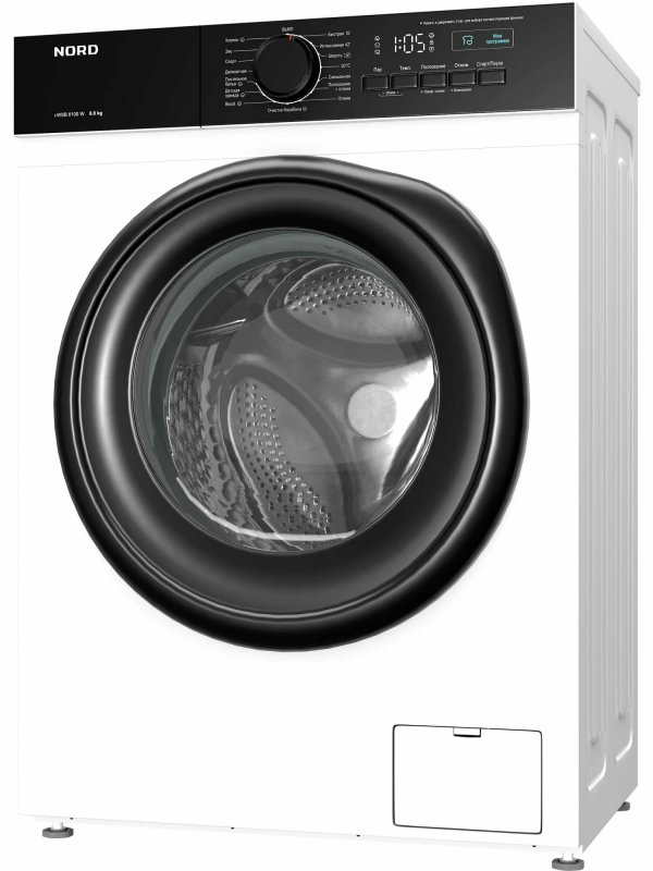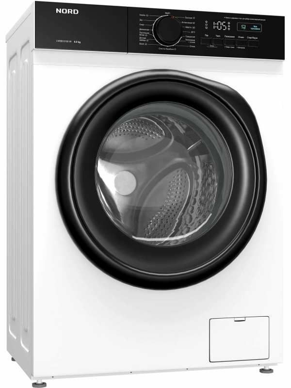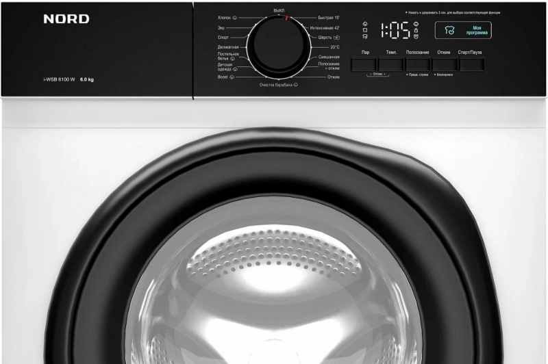 Стиральная машина NORD i-WSB 6100 W — это узкая и функциональная модель с глубиной корпуса всего 44 см и загрузкой до 6 кг. Она легко размещается в ограниченном пространстве и обеспечивает комфортную стирку на каждый день. Интеллектуальная smart-система самостоятельно определяет параметры стирки в зависимости от веса белья. Машина регулирует расход воды, балансирует барабан и контролирует уровень пены, делая процесс точным, экономичным и надёжным. Барабан с волновым подъёмником бережно перемещает бельё, равномерно распределяя ткани и эффективно удаляя загрязнения. Такое решение особенно ценно для деликатных и детских вещей — оно помогает сохранить структуру и форму тканей даже после многократных стирок. Функция стирки с паром позволяет глубоко очищать волокна, устранять неприятные запахи и бактерии, разглаживать складки и снижать риск аллергенов. Это делает одежду не только чище, но и безопаснее для чувствительной кожи. Модель оснащена инверторным двигателем, отличается тихой и стабильной работой, а класс энергоэффективности A+++ позволяет сократить расход электроэнергии. В вашем распоряжении 15 программ, включая режимы для хлопка, детской и спортивной одежды, деликатных тканей, быструю стирку, стирку с паром, шерсть, полоскание и отжим. Температура регулируется от холодной воды до 90°C, отжим — до 1000 об/мин с возможностью его отключения. Устройство поддерживает отложенный старт от 3 до 24 часов, функцию предварительной стирки, защиту от детей и персональную программу. LED-дисплей и удобная дверца с углом открытия 150° обеспечивают простой и понятный процесс управления. NORD i-WSB 6100 W — это надёжная и компактная стиральная машина с расширенным функционалом, созданная для бережного ухода за вашей одеждой.