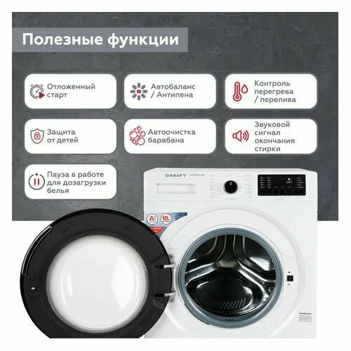 Стиральная машина KRAFT KF-MDS 10146 W - это современное и функциональное устройство для стирки белья.Стиральная машина оснащена фронтальной загрузкой до 10 кг белья, что позволяет стирать большие объемы белья за один раз. Максимальная скорость отжима составляет 1400 оборотов в минуту, что обеспечивает быстрое и качественное удаление влаги из белья.Модель обладает 15 различными программами стирки, включая обработку паром, стирку шерсти, хлопка, деликатных тканей, пуховых вещей и смешанных тканей. Это позволяет выбрать оптимальный режим стирки для любого типа белья.Стиральная машина оснащена функцией отложенного старта, защитой от перелива и блокировкой от детей, что обеспечивает безопасность использования. Кроме того, модель оснащена автоматическим перераспределением белья и контролем пенообразования.Модель относится к классу энергоэффективности А+++ и обладает низким расходом воды за одну стирку - не более 60 литров.Стиральная машина KRAFT KF-MDS 10146 W выполнена в белом цвете, имеет пластиковый бак и механический тип управления. Отдельный отсек для жидкого порошка и дисплей на корпусе делают использование машины еще более удобным.Производитель оставляет за собой право изменять характеристики товара без предварительного уведомления.
