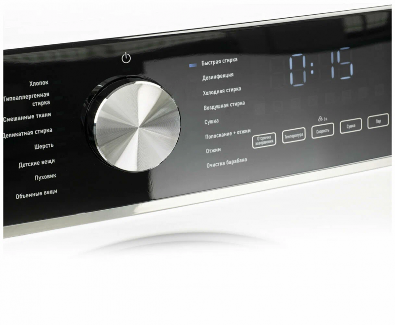 Внутренняя подсветка – белая при открытой дверце, синяя – во время работы. Свет не горит в программе сушки и программе воздушной очистки.