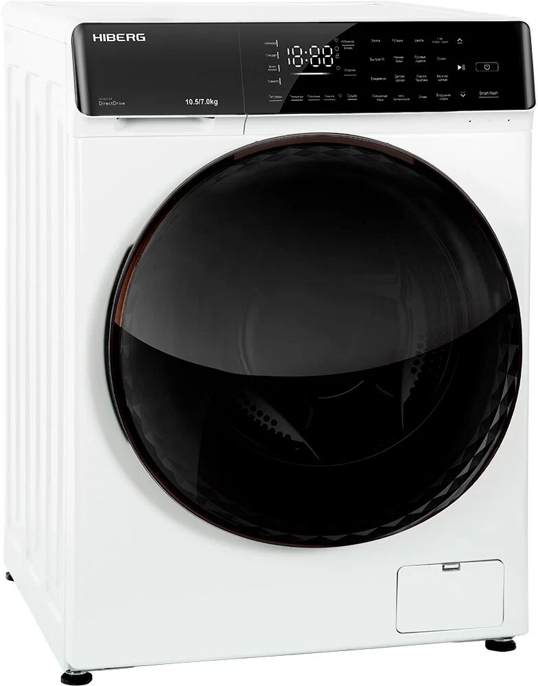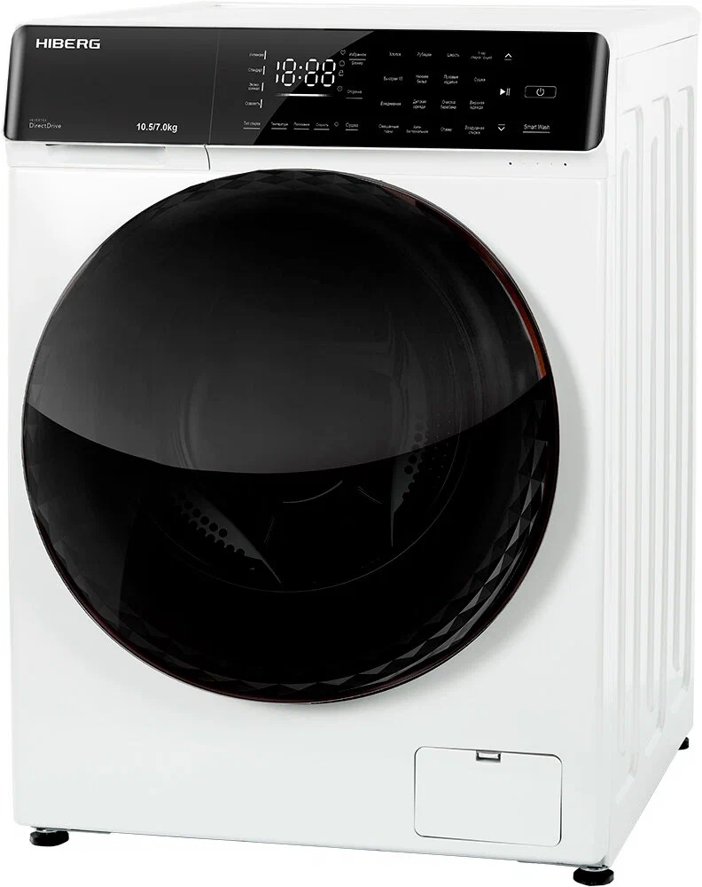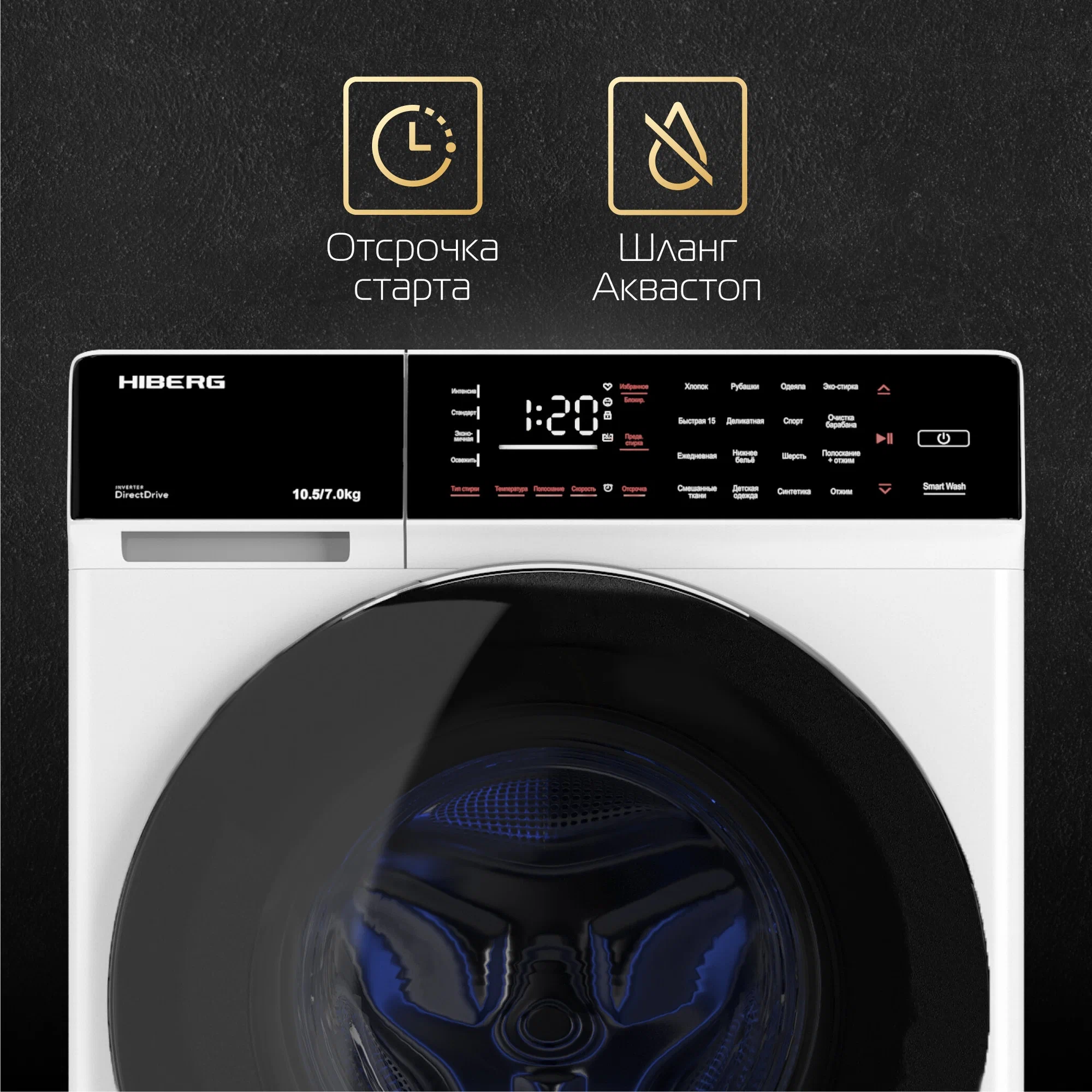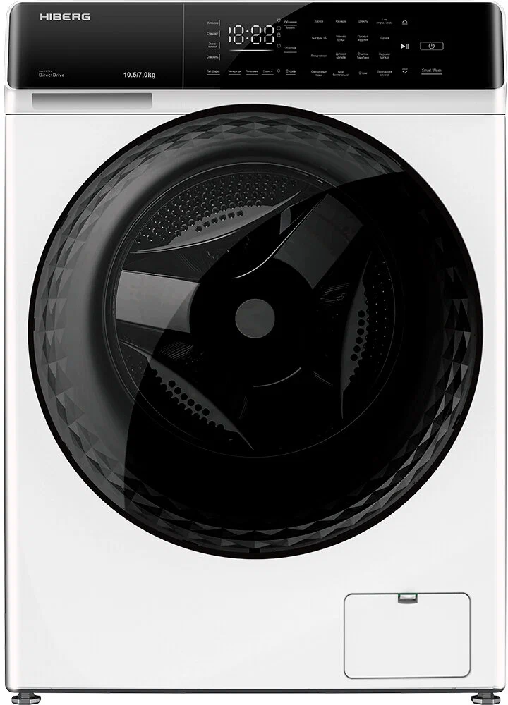 Стиральная машина с сушкой HIBERG i-DDQ9 - 10714, обладает самыми современными функциями и инновационными технологиями, обеспечит высокую эффективность и непревзойденный результат при каждой стирке!Данная модель обладает рядом преимуществ, одно из которых – инверторный мотор. Он работает тише стандартного, а так же отличается долговечностью и ресурсосбережением.Инновационная особенность внутреннего строения машинки – прямой привод. Двигатель прикрепляется к барабану машинки без использования ременной передачи, что влияет на практически бесшумную работу и повышенную устойчивость конструкции. В сбалансированном барабане белье распределяется равномерно, одежда отстирывается эффективнее и меньше сминается.Полноразмерная стиральная машина, с объемом бака 64 л и с фронтальным типом загрузки отстирает до 10,5 кг сухого белья за 1 цикл. Высший класс энергоэффективности А +++ характеризуется низким потреблением воды и электричества.С помощью сенсорного управления можно выбрать необходимую программу с предустановленными настройками, отрегулировать температуру и время стирки. На LED-дисплее световой индикацией отражается вся информация по выбранной программе, таймер, а так же срок завершения стирки, блокировка дверцы, замка от детей и кода ошибки.Датчик контроля пенообразования и функция контроля дисбаланса отвечают за правильность работы стиральной машины во время стирки.Стиральная машина HIBERG i-DDQ9 - 10714 оснащена 16 автоматическими программами. Вы можете стирать смешанные ткани, отдельно темные и цветные, блузки и рубашки, детские и шерстяные вещи, а также верхнюю одежду и пуховые изделия.Главная особенность модели – программа сушки белья, которая обеспечивает легкий разглаживающий эффект, а также экономит время и силы пользователя.Возможность отложить старт на определенный период от 1 до 24 часов, позволяет запустить машинку в более удобное время.Программа «Антибактериальная стирка» предназначена для удаления бактерий, стерилизации и обеззараживания тканей.«Smart wash» - интеллектуальная программа стирки, с которой отстирываются даже самые стойкие загрязнения, определяя вес белья и сочетая различное время и температуру.Программа «Воздушная стирка» бережно удалит пыль и различные запахи, защитит цвет, сделает одежду гладкой, пушистой и придаст ей прежний лоск.Режим быстрой стирки занимает по времени всего 15 минут и подходит для слабозагрязненных вещей.Избранная программа – часто используемый режим стирки с заданными дополнительными функциями и параметрами стирки.К полезным функциям можно также отнести: дополнительное полоскание, возможность дозагрузки белья, «Замок от детей», и функция "АкваСтоп".Барабан выполнен из прочной высококачественной нержавеющей стали с функцией самоочистки, а его специальный рельеф обеспечивает тщательную и бережную стирку. Для удобства использования, барабан имеет собственную подсветку.Доверьте качественную и бережную стирку стиральной машинке премиум класса HIBERG i-DDQ9 - 10714.