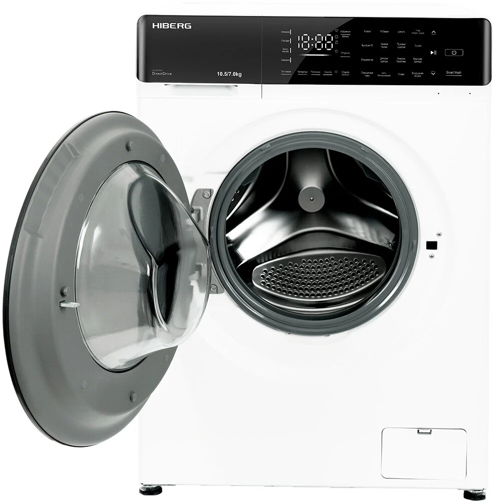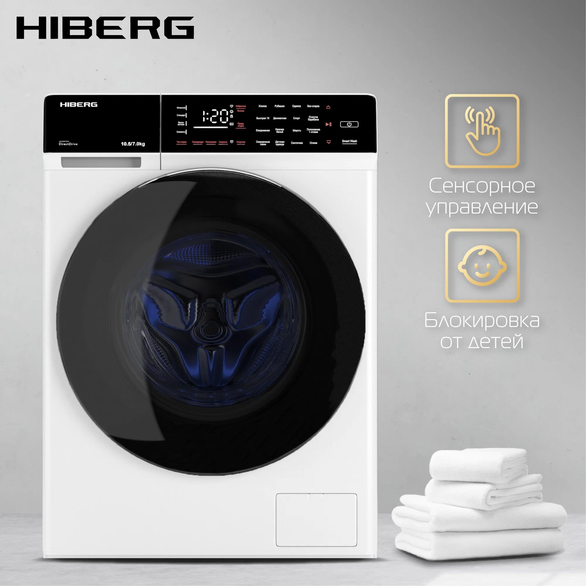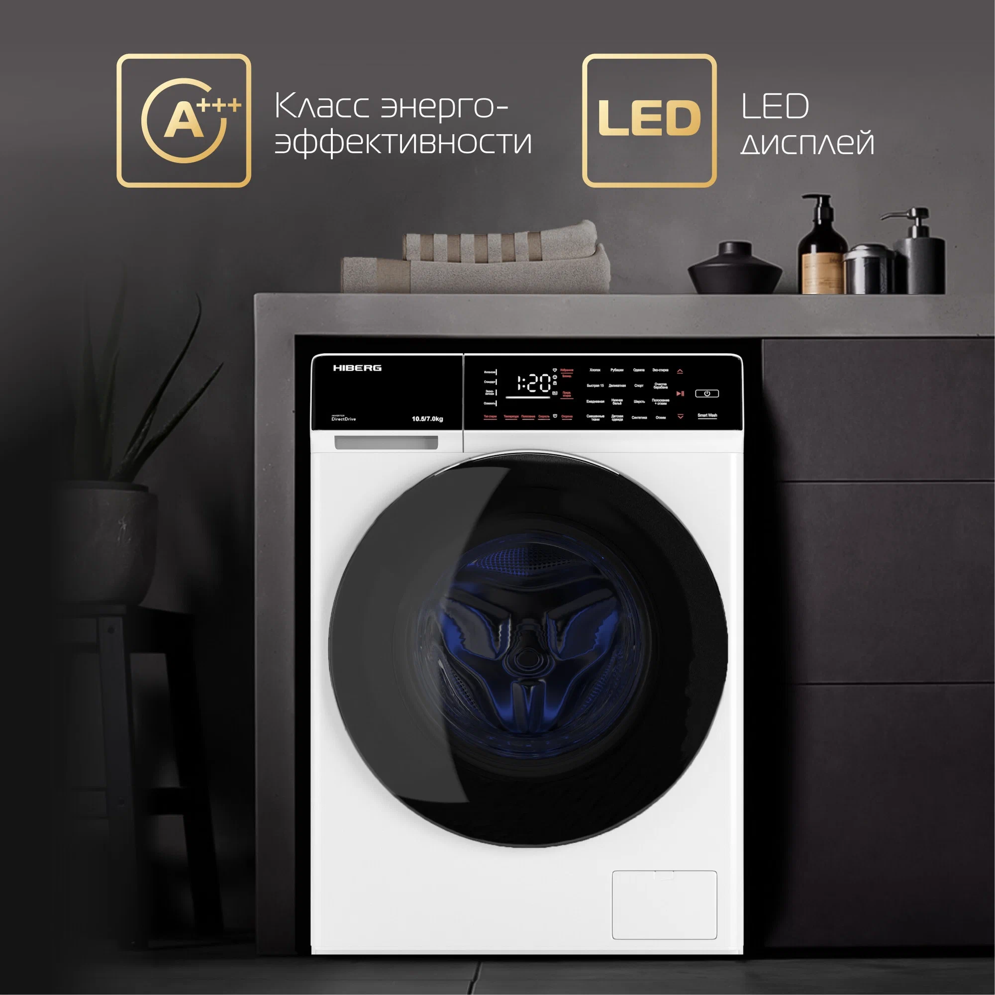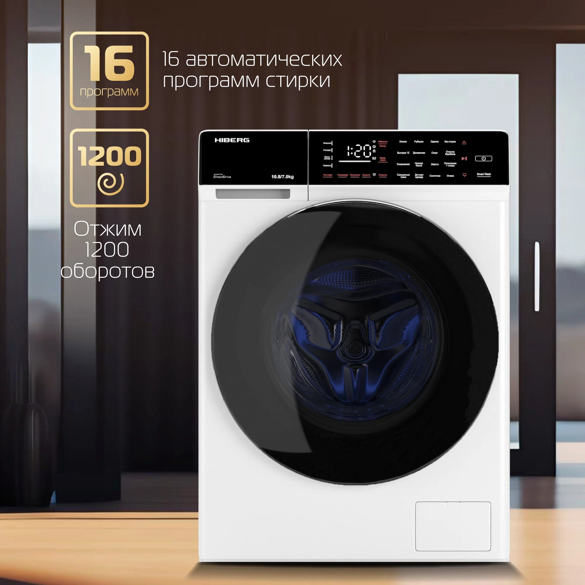 Стиральная машина с сушкой HIBERG i-DDQ9 - 10714, обладает самыми современными функциями и инновационными технологиями, обеспечит высокую эффективность и непревзойденный результат при каждой стирке!Данная модель обладает рядом преимуществ, одно из которых – инверторный мотор. Он работает тише стандартного, а так же отличается долговечностью и ресурсосбережением.Инновационная особенность внутреннего строения машинки – прямой привод. Двигатель прикрепляется к барабану машинки без использования ременной передачи, что влияет на практически бесшумную работу и повышенную устойчивость конструкции. В сбалансированном барабане белье распределяется равномерно, одежда отстирывается эффективнее и меньше сминается.Полноразмерная стиральная машина, с объемом бака 64 л и с фронтальным типом загрузки отстирает до 10,5 кг сухого белья за 1 цикл. Высший класс энергоэффективности А +++ характеризуется низким потреблением воды и электричества.С помощью сенсорного управления можно выбрать необходимую программу с предустановленными настройками, отрегулировать температуру и время стирки. На LED-дисплее световой индикацией отражается вся информация по выбранной программе, таймер, а так же срок завершения стирки, блокировка дверцы, замка от детей и кода ошибки.Датчик контроля пенообразования и функция контроля дисбаланса отвечают за правильность работы стиральной машины во время стирки.Стиральная машина HIBERG i-DDQ9 - 10714 оснащена 16 автоматическими программами. Вы можете стирать смешанные ткани, отдельно темные и цветные, блузки и рубашки, детские и шерстяные вещи, а также верхнюю одежду и пуховые изделия.Главная особенность модели – программа сушки белья, которая обеспечивает легкий разглаживающий эффект, а также экономит время и силы пользователя.Возможность отложить старт на определенный период от 1 до 24 часов, позволяет запустить машинку в более удобное время.Программа «Антибактериальная стирка» предназначена для удаления бактерий, стерилизации и обеззараживания тканей.«Smart wash» - интеллектуальная программа стирки, с которой отстирываются даже самые стойкие загрязнения, определяя вес белья и сочетая различное время и температуру.Программа «Воздушная стирка» бережно удалит пыль и различные запахи, защитит цвет, сделает одежду гладкой, пушистой и придаст ей прежний лоск.Режим быстрой стирки занимает по времени всего 15 минут и подходит для слабозагрязненных вещей.Избранная программа – часто используемый режим стирки с заданными дополнительными функциями и параметрами стирки.К полезным функциям можно также отнести: дополнительное полоскание, возможность дозагрузки белья, «Замок от детей», и функция "АкваСтоп".Барабан выполнен из прочной высококачественной нержавеющей стали с функцией самоочистки, а его специальный рельеф обеспечивает тщательную и бережную стирку. Для удобства использования, барабан имеет собственную подсветку.Доверьте качественную и бережную стирку стиральной машинке премиум класса HIBERG i-DDQ9 - 10714.