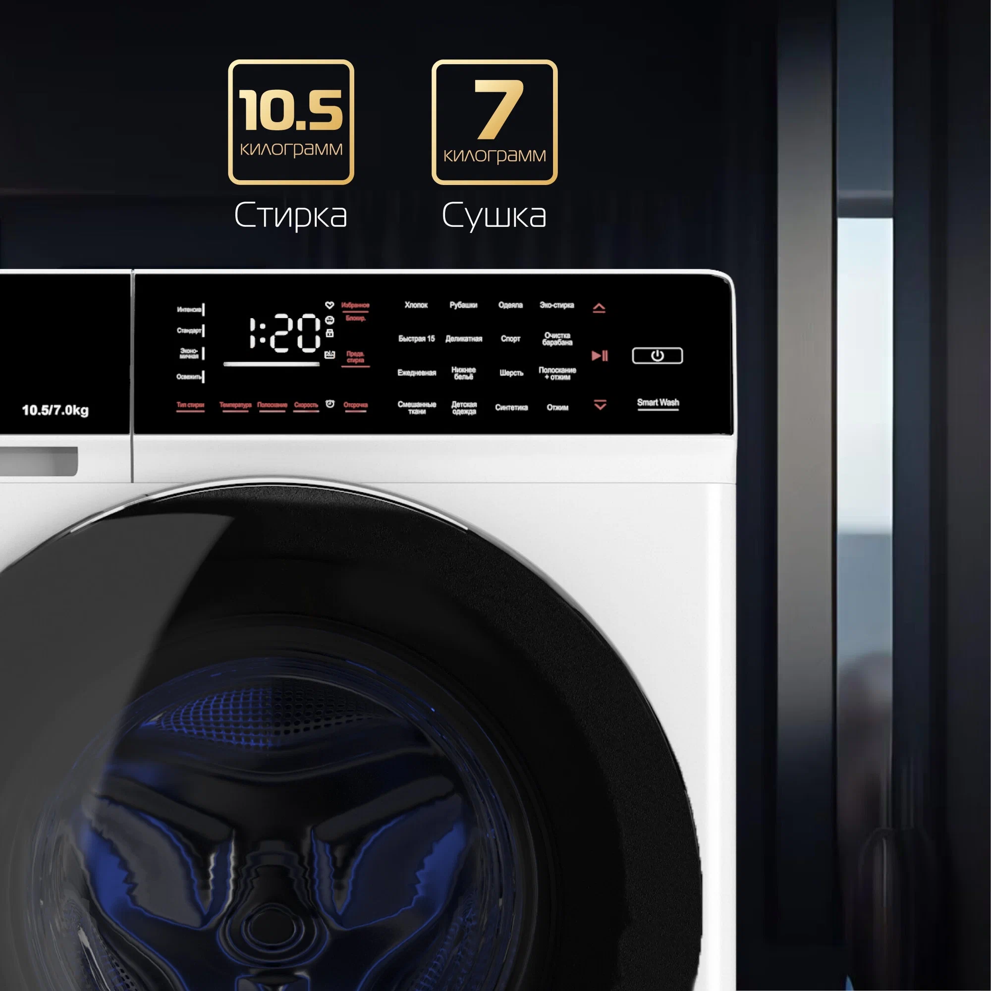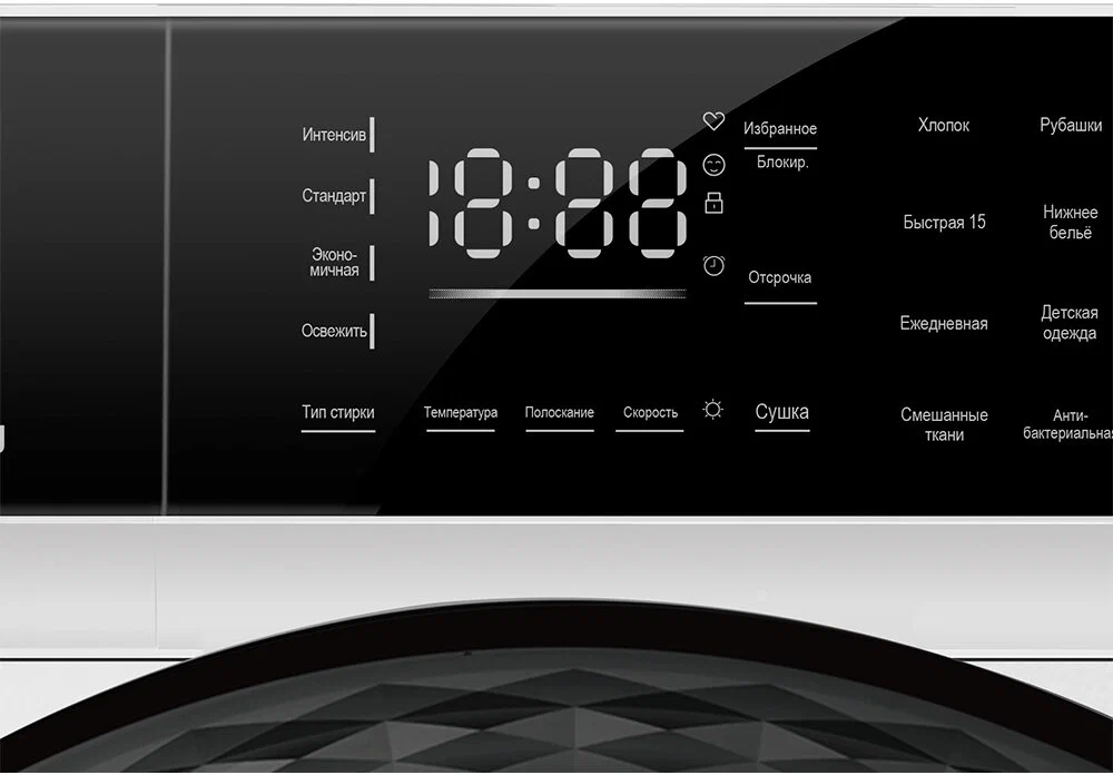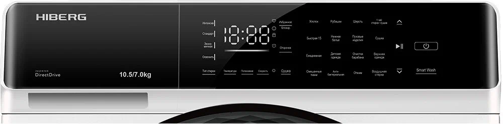 - Дополнительная информация: 1 час стирка+сушка, Антибактериальная стирка, Избранная программа, Smart Wash, подсветка барабана