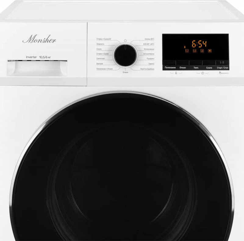 Дополнительная информация: Стиральная машина Monsher MWDM 665, с сушкой, инверторный двигатель, 10 кг, белая