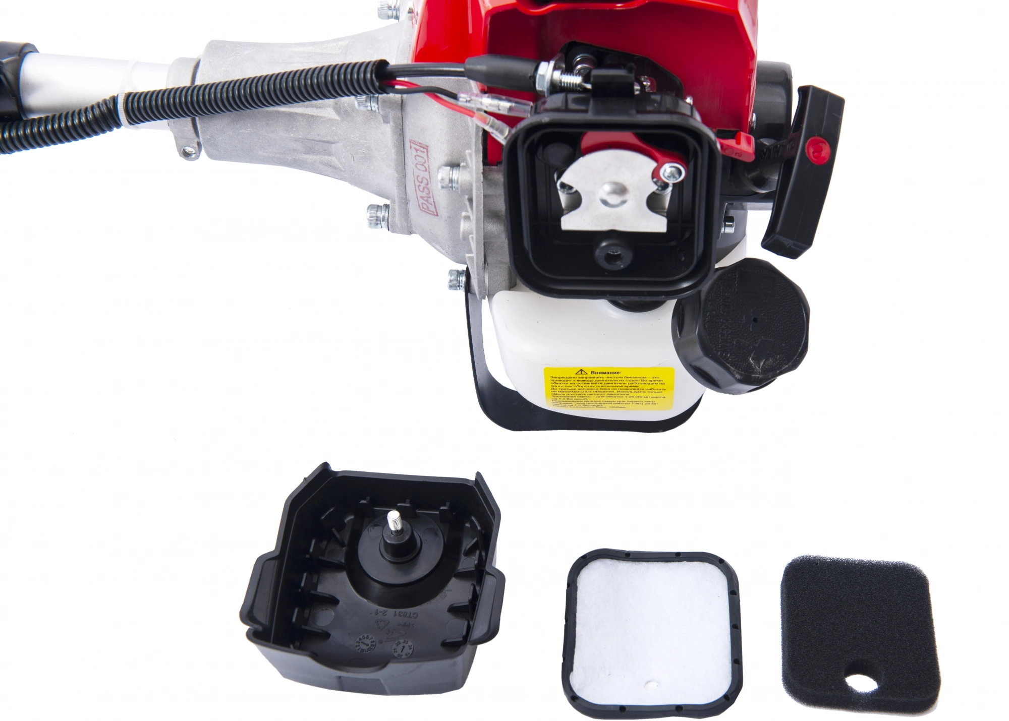 • Комплект поставки: "Триммер бензиновый (двигатель с ручкой газа и штанга)