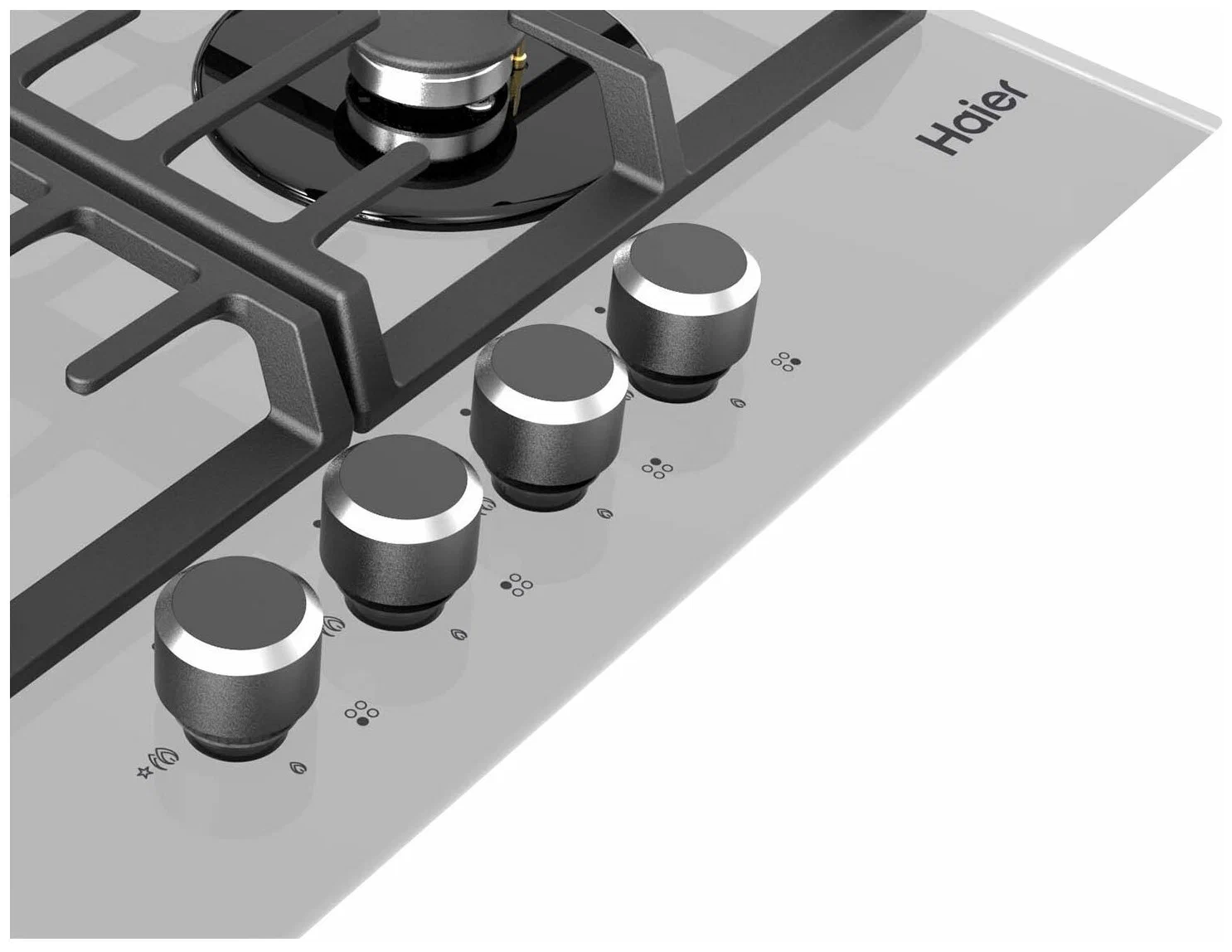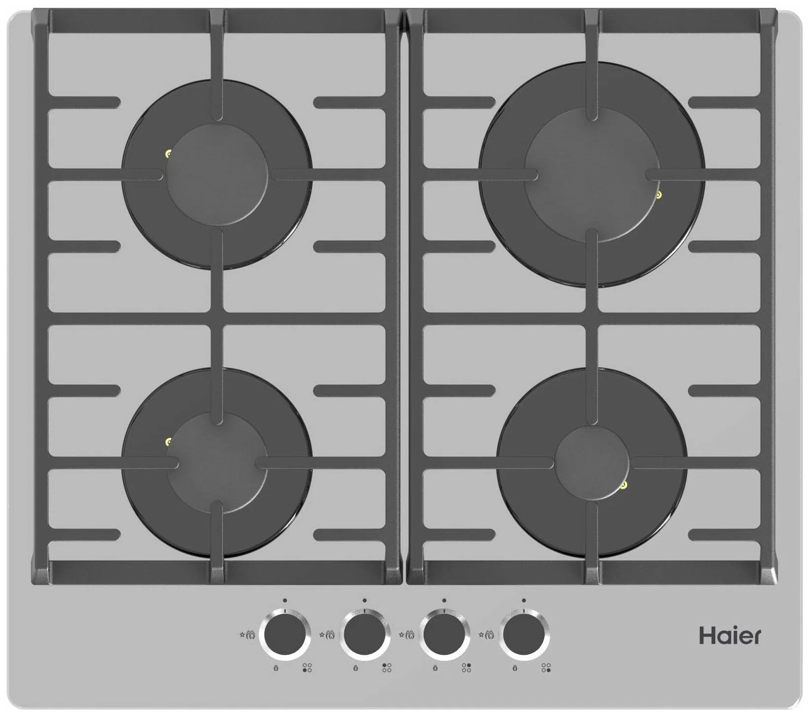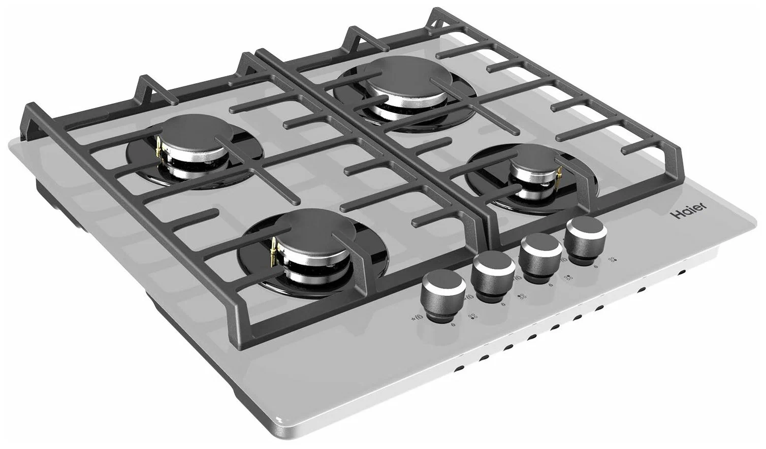 Газовая панель Haier HHX-G64CNG покоряет своим дизайном — сочетание серого закалённого стекла поверхности с тёмными решётками, конфорками и элементами управления смотрится очень выигрышно. Серый цвет стекла не только самый практичный, но также хорошо впишется в современный интерьер. Готовка будет комфортной, благодаря чугунным решёткам, обеспечивающим устойчивость посуды. Эти решётки съёмные — их легко содержать в чистоте. Поворотные регуляторы управления конфорками изготовлены из металла и находятся в передней части панели — это максимально удобно для пользователя. Haier HHX-G64CNG — стильная, современная и безопасная варочная поверхность для вашей кухни.