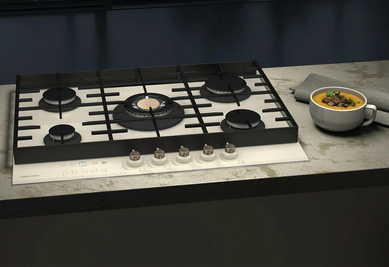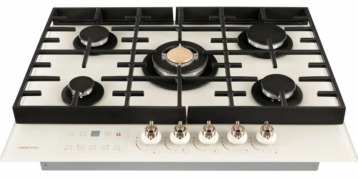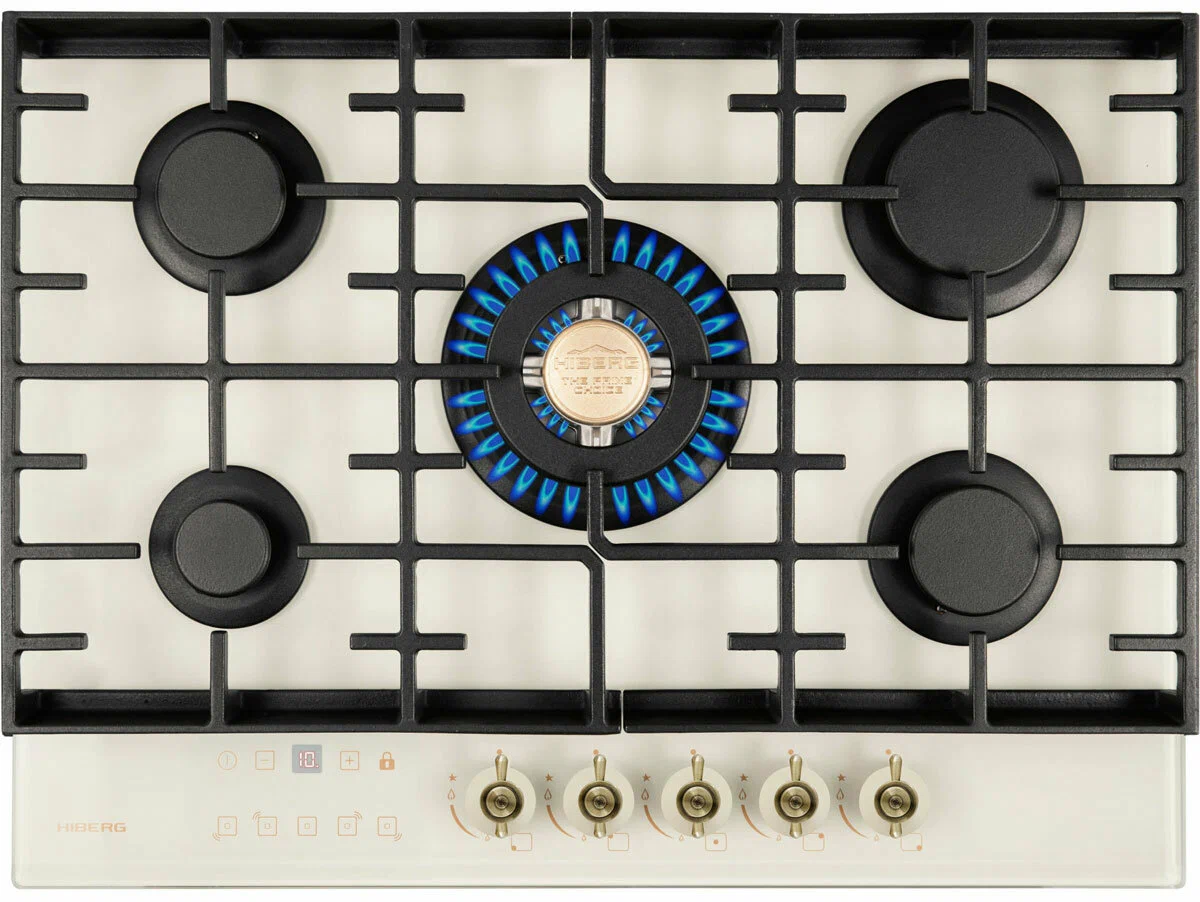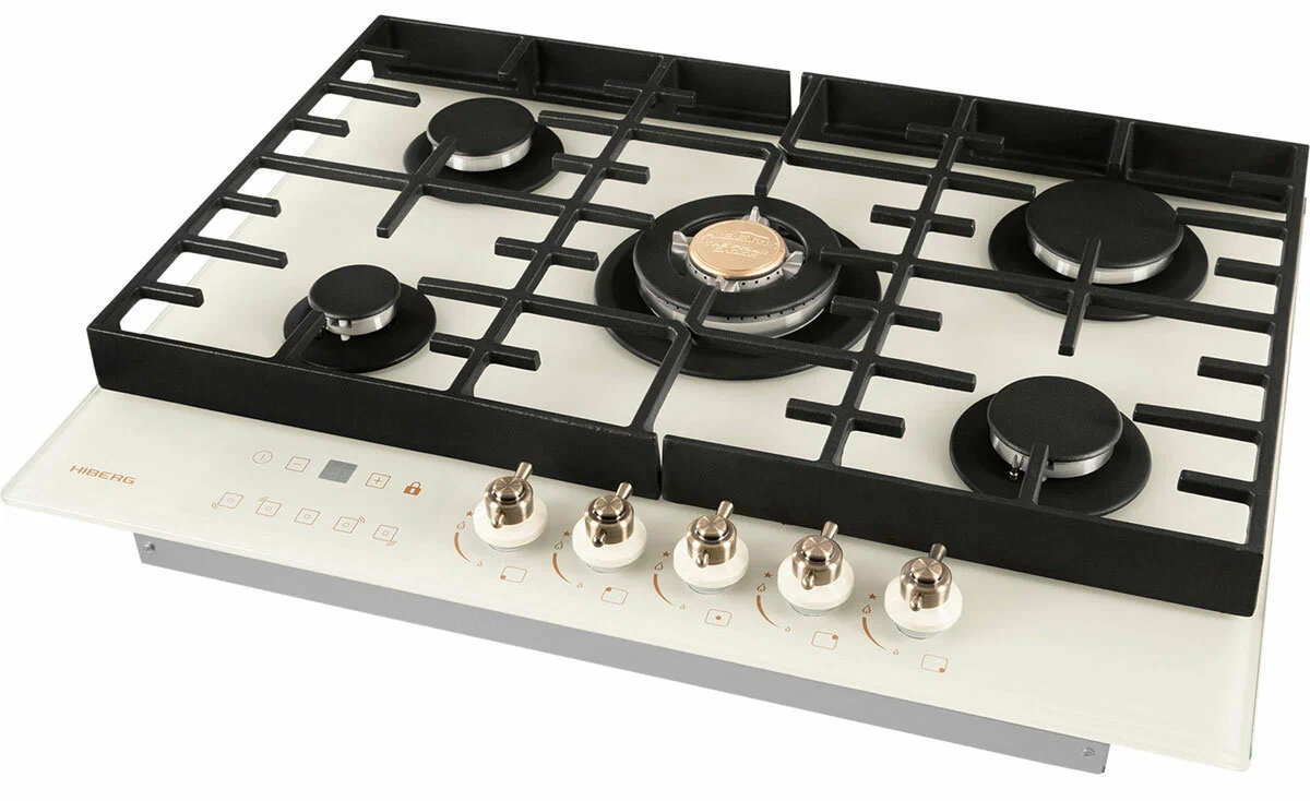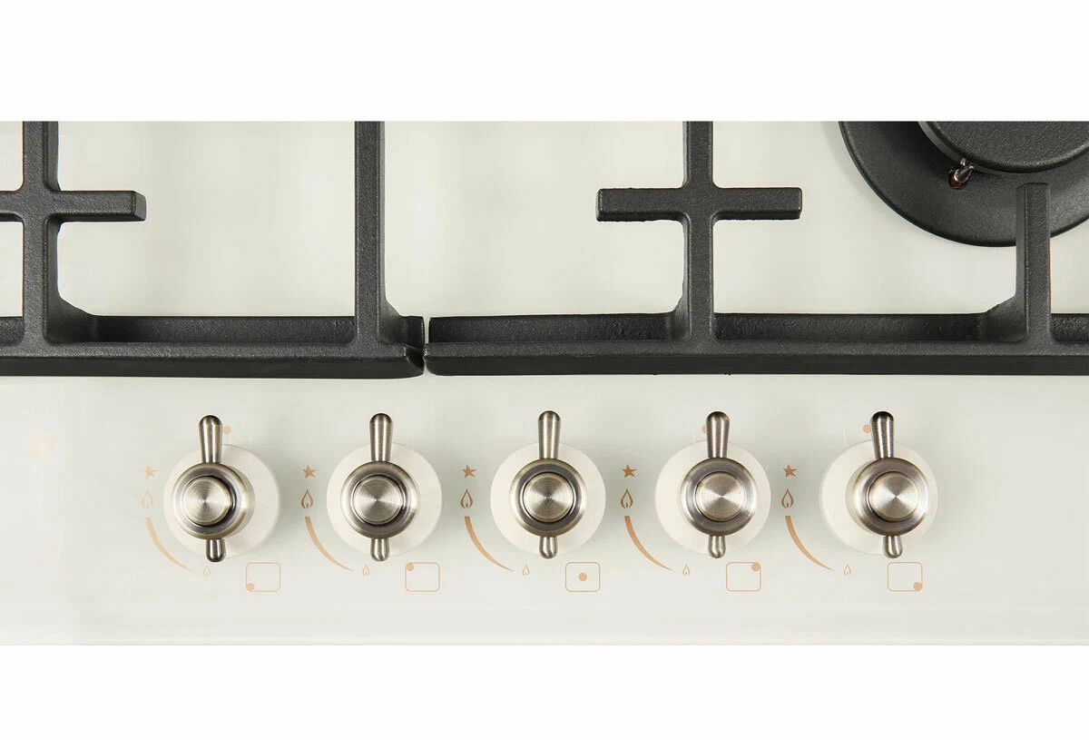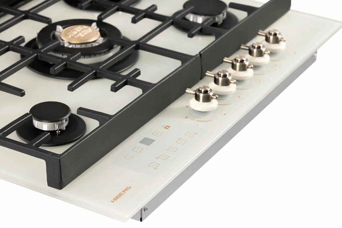 Встраиваемая газовая варочная поверхность HIBERG VM 7155 Y из закаленного стекла в бежевом цвете и ретро-стиле, оснащена 5 конфорками и функциями: автоматический «электророзжиг», «газ-контроль» и сенсорный таймер отключения. В комплект варочной поверхности входит дополнительный набор ручек регуляторов в современном стилеРабочая поверхность выполнена из закаленного стекла - прочного и долговечного материала, на ней располагаются 5 конфорок разных по диаметру и мощности огня. WOK конфорка мощностью 3,4 кВт позволяет ускорить закипание воды и использовать интенсивную скорость прожарки.Мощность любой горелки можно регулировать с помощью поворотных переключателей. Для удобства пользования варочной панелью в переключатели встроен «электророзжиг», который позволит одним нажатием руки легко включить нужную конфорку без использования спичек.В варочной поверхности эффективно продумана система безопасности при утечке газа. В случае пролива жидкости на варочную панель или затухания пламени от сквозняка, в конфорке срабатывает функция газ-контроль и подача газа прекращается.Сенсорный индивидуальный таймер для каждой конфорки дает возможность контролировать время готовки каждого блюда. Таймер устанавливается с диапазоном от 1 до 99 минут, по истечении заданного времени варочная панель отключается автоматически.Поверх конфорок установлены чугунные решетки новой конструкции: соприкасаясь со стеклянной панелью только спереди и сзади, обеспечивают меньшую нагрузку на стекло и не оставляют царапин. Кроме того, такие держатели легкие по весу, удобные в уходе и использовании любой посуды на варочной поверхности.Общие данные:Габариты: 10x68.4x51 смГабариты ниши для встраивания: -х56х48 смРабочий стол: закаленное стеклоКоличество конфорок: 5 газовых, в том числе WOK конфоркаЭлектроподжиг конфорок: Автоматический от ручкиГаз-контроль конфорокУправление:Регулировочные ручки: Поворотные, металлТаймерДополнительная информация:Материал решеток: Чугун, усиленныйДлина сетевого шнура: 120 смВес: 15 кг2 вида ручек в комплекте