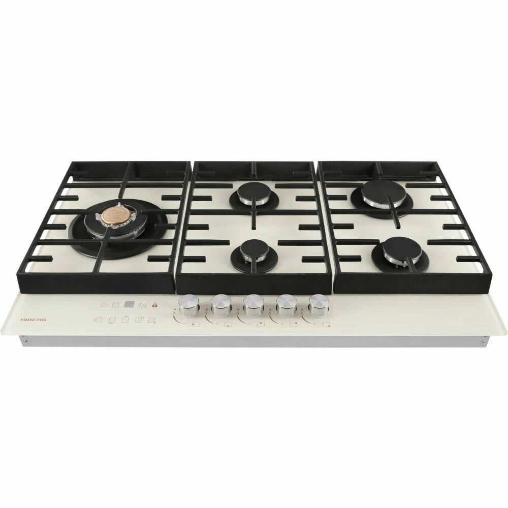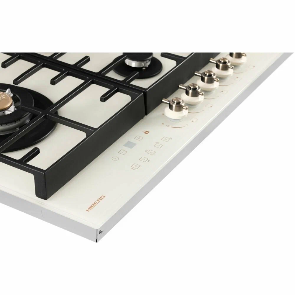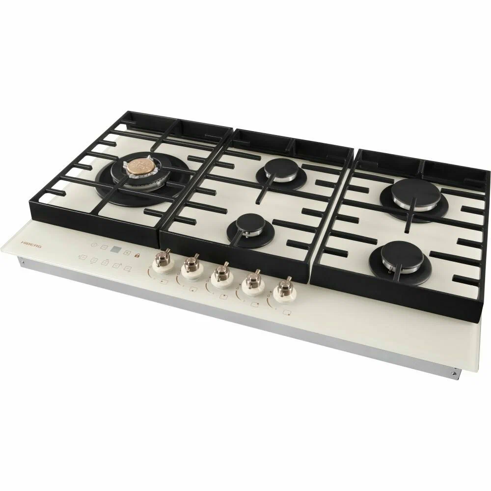 Встраиваемая газовая варочная поверхность HIBERG VM 9155 Y из закаленного стекла в бежевом цвете и ретро-стиле, оснащена 5 конфорками и функциями: автоматический «электророзжиг», «газ-контроль» и сенсорный таймер отключения.Варочная поверхность шириной 90 см подходит для установки на просторных кухнях и для большой семьи.Рабочая поверхность выполнена из закаленного стекла – прочного и долговечного материала, на ней располагаются 5 конфорок разных по диаметру и мощности огня.WOK конфорка мощностью 3,4 кВт позволяет ускорить закипание воды и использовать интенсивную скорость прожарки.Мощность любой горелки можно регулировать с помощью поворотных переключателей.Для удобства пользования варочной панелью в переключатели встроен «электророзжиг», который позволит одним нажатием руки легко включить нужную конфорку без использования спичек.В варочной поверхности эффективно продумана система безопасности при утечке газа. В случае пролива жидкости на варочную панель или затухания пламени от сквозняка, в конфорке срабатывает функция газ-контроль и подача газа прекращается.Сенсорный индивидуальный таймер для каждой конфорки дает возможность контролировать время готовки каждого блюда. Каждая конфорка будет отключаться именно в то время, которое было задано именно для нее.Таймер устанавливается с диапазоном от 1 до 99 минут, по истечении заданного времени конфорка отключается автоматически.Поверх конфорок установлены чугунные решетки новой конструкции: соприкасаясь со стеклянной панелью только спереди и сзади, обеспечивают меньшую нагрузку на стекло и не оставляют царапин. Прочные чугунные решетки удобные в уходе, не подвержены воздействию высоких температур и отличаются длительным сроком службы.Особенности и преимущества:- поверхность из закаленного стекла;- электророзжиг;- газ-контроль;- сенсорный таймер;- WOK конфорка;- улучшенные чугунные решетки;- цвет: бежевый.Гарантия на варочную поверхность HIBERG – 2 года.