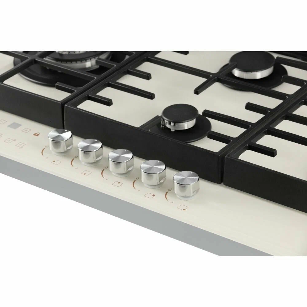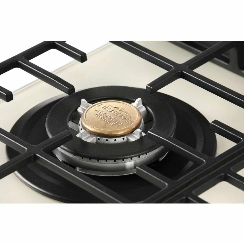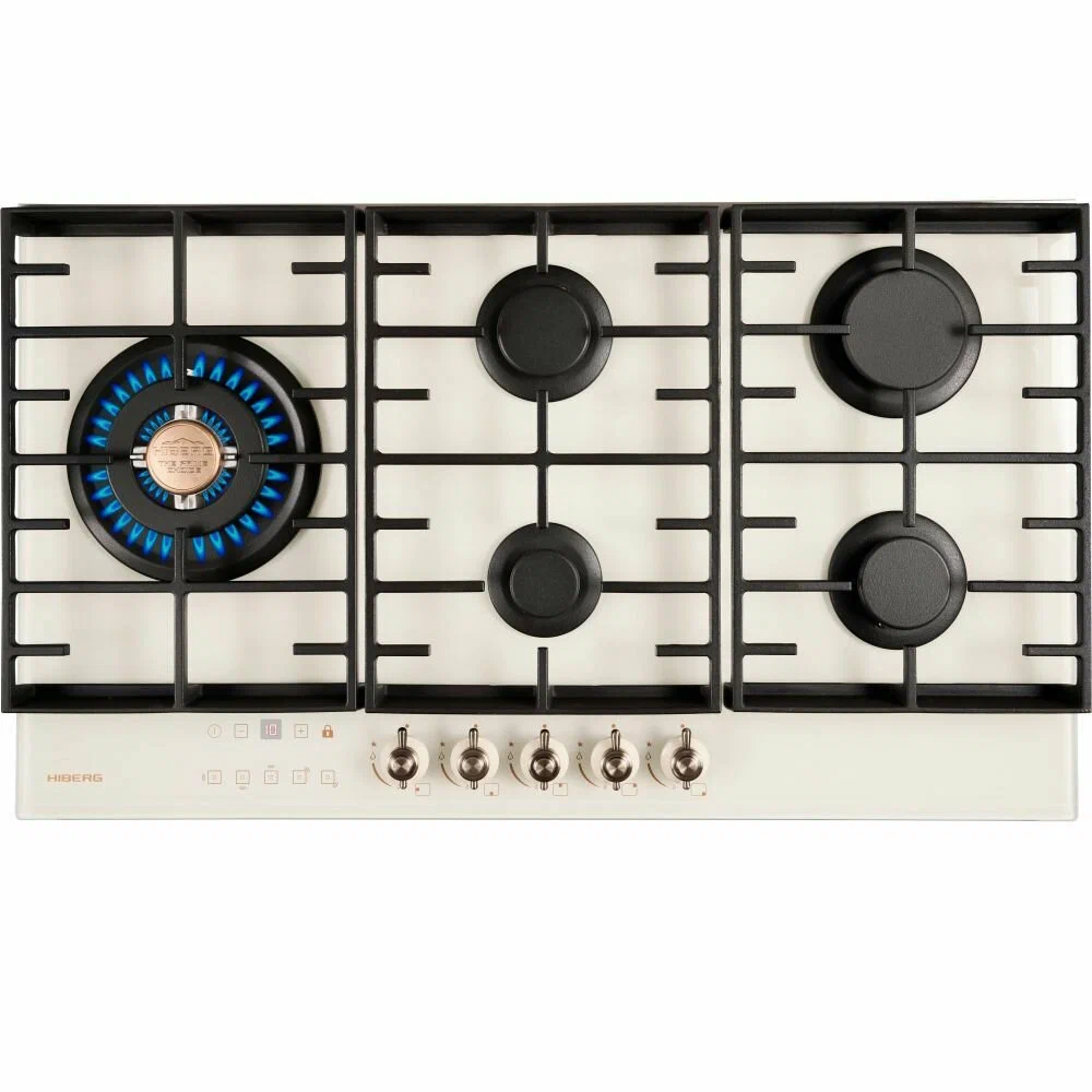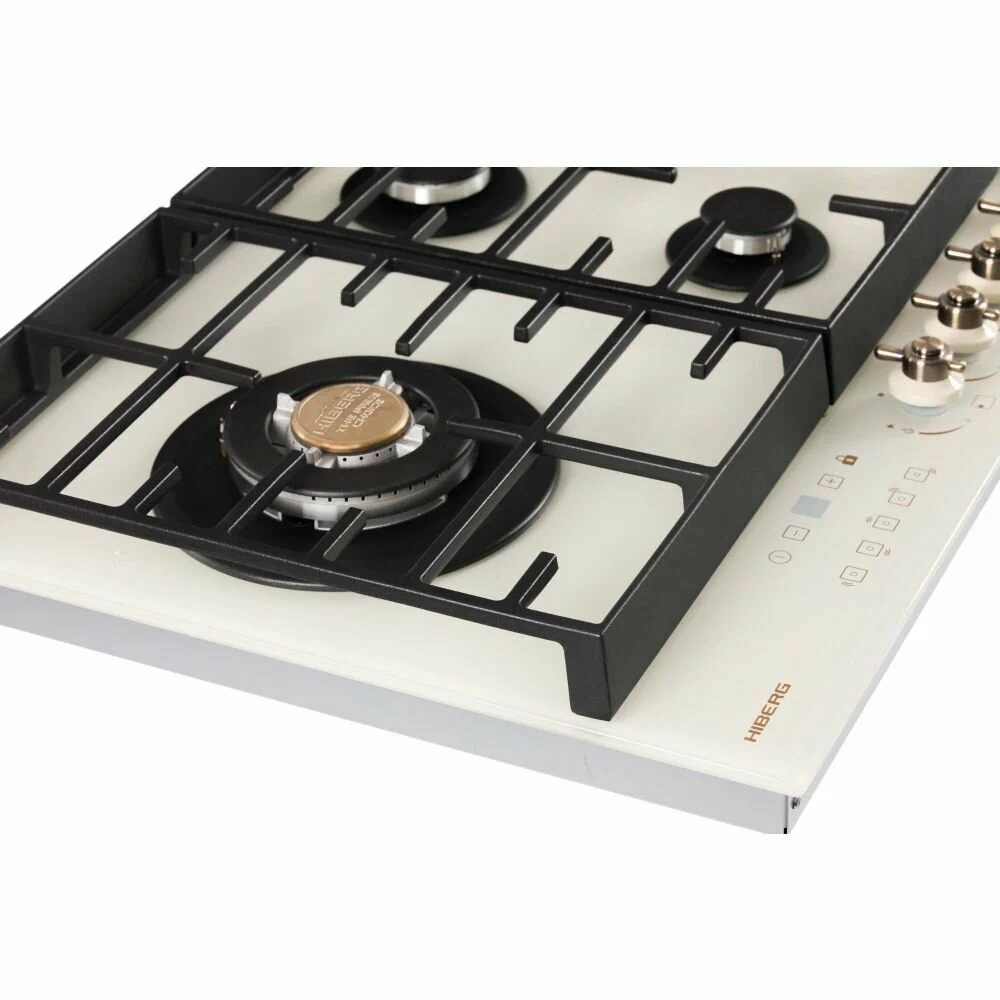 Встраиваемая газовая варочная поверхность HIBERG VM 9155 Y из закаленного стекла в бежевом цвете и ретро-стиле, оснащена 5 конфорками и функциями: автоматический «электророзжиг», «газ-контроль» и сенсорный таймер отключения.Варочная поверхность шириной 90 см подходит для установки на просторных кухнях и для большой семьи.Рабочая поверхность выполнена из закаленного стекла – прочного и долговечного материала, на ней располагаются 5 конфорок разных по диаметру и мощности огня.WOK конфорка мощностью 3,4 кВт позволяет ускорить закипание воды и использовать интенсивную скорость прожарки.Мощность любой горелки можно регулировать с помощью поворотных переключателей.Для удобства пользования варочной панелью в переключатели встроен «электророзжиг», который позволит одним нажатием руки легко включить нужную конфорку без использования спичек.В варочной поверхности эффективно продумана система безопасности при утечке газа. В случае пролива жидкости на варочную панель или затухания пламени от сквозняка, в конфорке срабатывает функция газ-контроль и подача газа прекращается.Сенсорный индивидуальный таймер для каждой конфорки дает возможность контролировать время готовки каждого блюда. Каждая конфорка будет отключаться именно в то время, которое было задано именно для нее.Таймер устанавливается с диапазоном от 1 до 99 минут, по истечении заданного времени конфорка отключается автоматически.Поверх конфорок установлены чугунные решетки новой конструкции: соприкасаясь со стеклянной панелью только спереди и сзади, обеспечивают меньшую нагрузку на стекло и не оставляют царапин. Прочные чугунные решетки удобные в уходе, не подвержены воздействию высоких температур и отличаются длительным сроком службы.Особенности и преимущества:- поверхность из закаленного стекла;- электророзжиг;- газ-контроль;- сенсорный таймер;- WOK конфорка;- улучшенные чугунные решетки;- цвет: бежевый.Гарантия на варочную поверхность HIBERG – 2 года.
