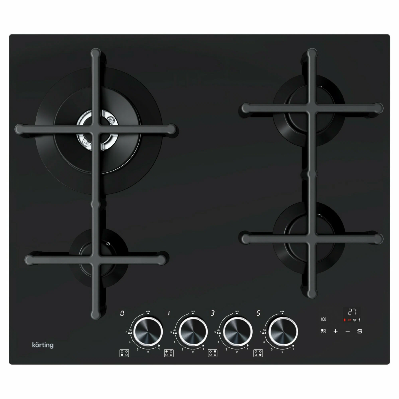 Функция мгновенного электроподжига конфорки не требует длительного удерживания поворотного регулятора в нажатом положении, как это необходимо на стандартной газовой поверхности.Достаточно нажать и повернуть регулятор – соответствующая конфорка загорится в течение 2-3 секунд.Сигнализация утечки газаВ случае обнаружения утечки газа, на дисплее будет мигать код неисправности, а также раздастся звуковой предупредительный сигнал. Код ошибки будет отображаться на дисплее пока неисправность, вызвавшая утечку не будет устранена. При этом прибор будет автоматически отключен сразу после срабатывания данной функции, любые операции с варочной поверхностью будут невозможны.Электронный таймер с цифровой индикациейГазовые варочные поверхности с уникальным электронным управлением полностью меняют ощущения от взаимодействия с прибором. Одна из самых востребованных функций – таймер отключения на каждую конфорку. Достаточно установить время, по истечении которого подача газа автоматически прекращается, и процесс приготовления останавливается. Благодаря таймеру обеспечивается высокая степень безопасности и удобства, чтобы наслаждаться процессом кулинарного творчества без лишних забот.Функция управления кухонной вытяжкойПосле сопряжения двух приборов скорость работы вытяжки будет изменяться автоматически, в зависимости от выбранного уровня мощности варочной поверхности.Управлять вытяжкой можно как с ее контрольной панели, так и с варочной поверхности, без необходимости повторного соединения устройств.Стеклянная поверхностьВысокая устойчивость к тепловому и химическому воздействию, низкое тепловое расширение, высокая устойчивость к тепловым ударам, способность выдерживать в течение длинных периодов времени температуры до 450°C. Все это позволяет использовать его в течение длительного времени, в самых сложных задачах при приготовлении пищи.Уникальная конструкция WOKНовая зона WOK помогает распределять тепло по всему дну посуды, обеспечивая более равномерный прогрев всего дна. Новая конструкция позволяет снизить потребление газа без изменения эффективности.Индикация остаточного теплаСветовой индикатор в варочных поверхностях Korting горит, пока температура соответствующего нагревательного поля не понизится до 60°С. Это можно также использовать для подогрева блюд при уже выключенной варочной панели, что позволяет экономить электроэнергию, а так же сообщит когда можно приступать к очистки поверхности.Газ-контрольДаже если пламя погаснет, вам не стоит переживать, ведь во всех моделях Korting установлена система безопасности «Газ-контроль». Данная функция просто остановит подачу газа в случае, если конфорка случайно погаснет.ЭлектроподжигВам больше не придется пользоваться спичками и зажигалками. Система «Электроподжиг» от Korting очень удобна и абсолютно безопасна. Просто поверните и нажмите регулятор — конфорка автоматически зажжется.Чугунные держатели для посудыKorting изготавливает держатели для посуды из высококачественных материалов, чтобы вы могли пользоваться ими долгие годы. Держатели из чугуна эргономичны и очень устойчивы. Благодаря этому вам удобно готовить на поверхностях Korting, а риск падения кастрюль и пролива жидкостей сводится к минимуму.Тип: Встраиваемая техникаТип панели: Газ на стеклеДизайн