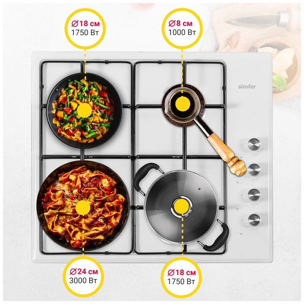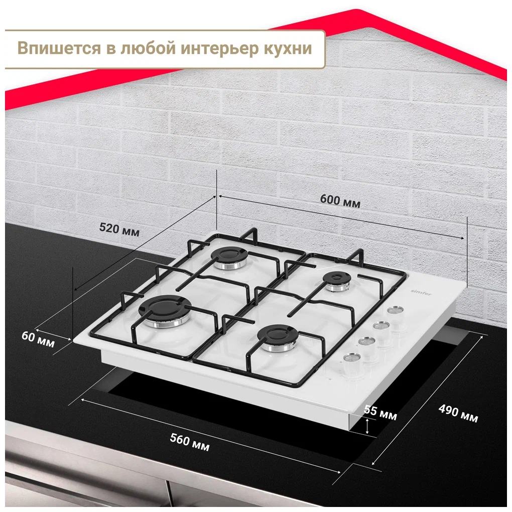 Газовая варочная панель Simfer H 60 Q 40 W 411, белый