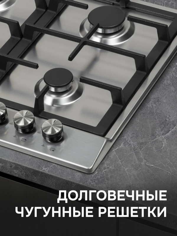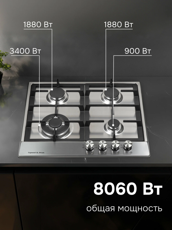 Газовая варочная панель Zigmund & Shtain GN 128.61 S – это современное оборудование, предназначенное для приготовления пищи. Устройство отличается высоким уровнем безопасности, благодаря оснащению специальной системой «Газ-контроль», которая перекроет газ в случае угасания пламени. Такая возможность снижает к минимум возможность возгарания.Поверхность легко монтируется, имеет привлекательный внешний вид, удобную эксплуатацию и высокое качество. Тройное кольцо пламени обеспечивает быстрый нагрев и приготовление пищи, что позволяет сэкономить ваше время.Основные технические характеристики:· Ширина поверхности – 60 мм.· Цвет поверхности – черный.· Материал решеток - термостойкий чугун.· Переключатели – поворотного типа· Количество газовых конфорок – 4.· Мощность конфорок (Вт) – 3400, 950, 2х1880.