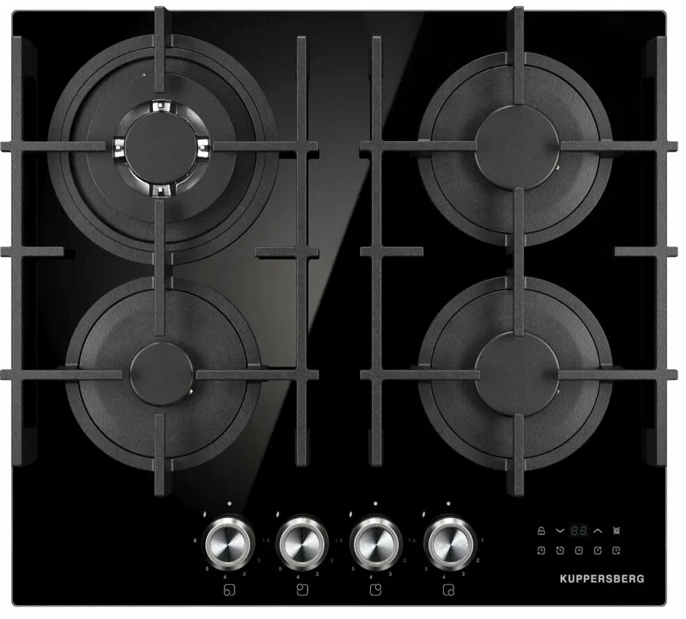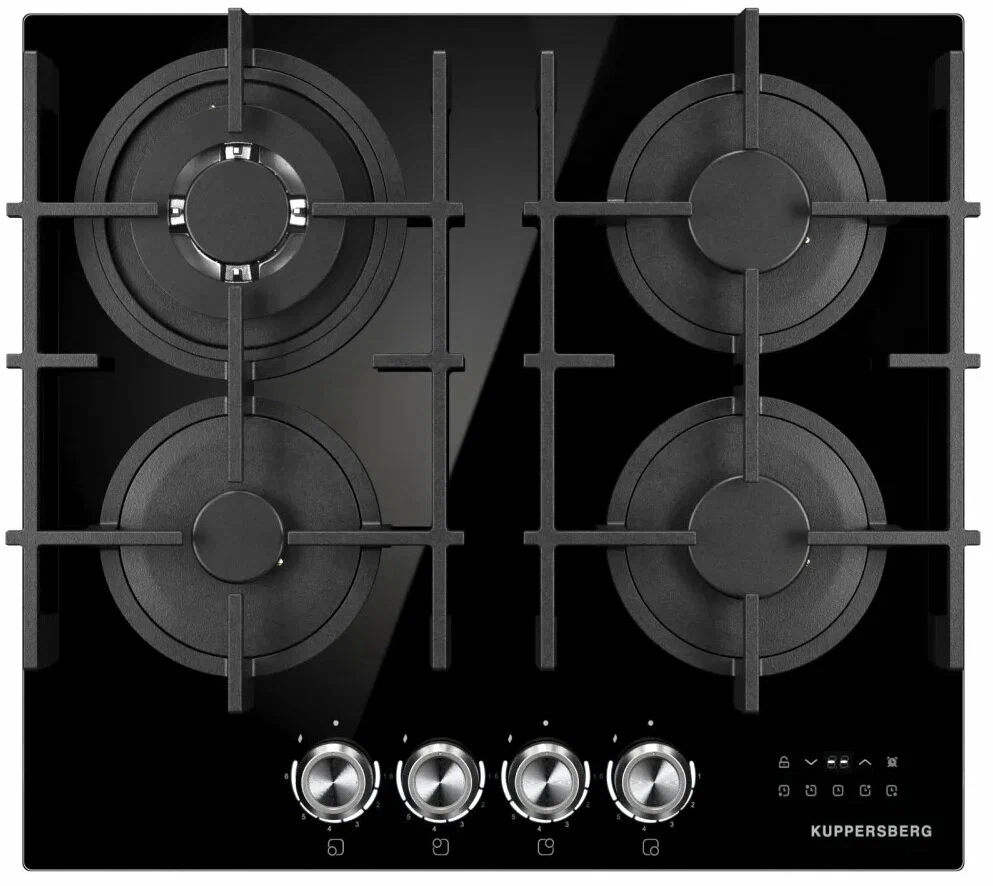 Варочная поверхность Kuppersberg FG 68 B из серии High-Tech — газовая модель с четырьмя конфорками. Оснащена автоматическим электроподжигом и системой газ-контроля для безопасности. Управление комбинированное: механическое и сенсорное, с таймером, блокировкой и подсветкой панели.