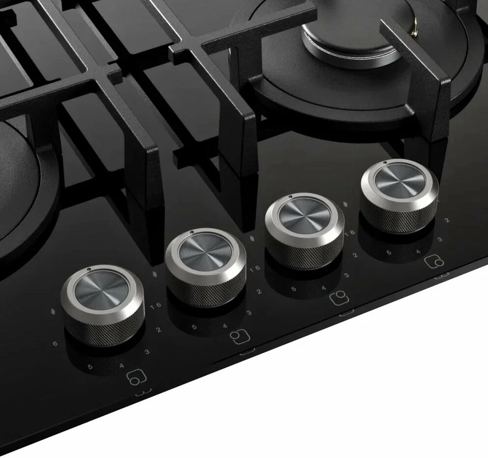 Газовая варочная поверхность оснащена четырьмя конфорками, включая одну конфорку "Двойная корона". Это позволяет готовить разнообразные блюда на разных уровнях мощности, что значительно расширяет кулинарные возможности.