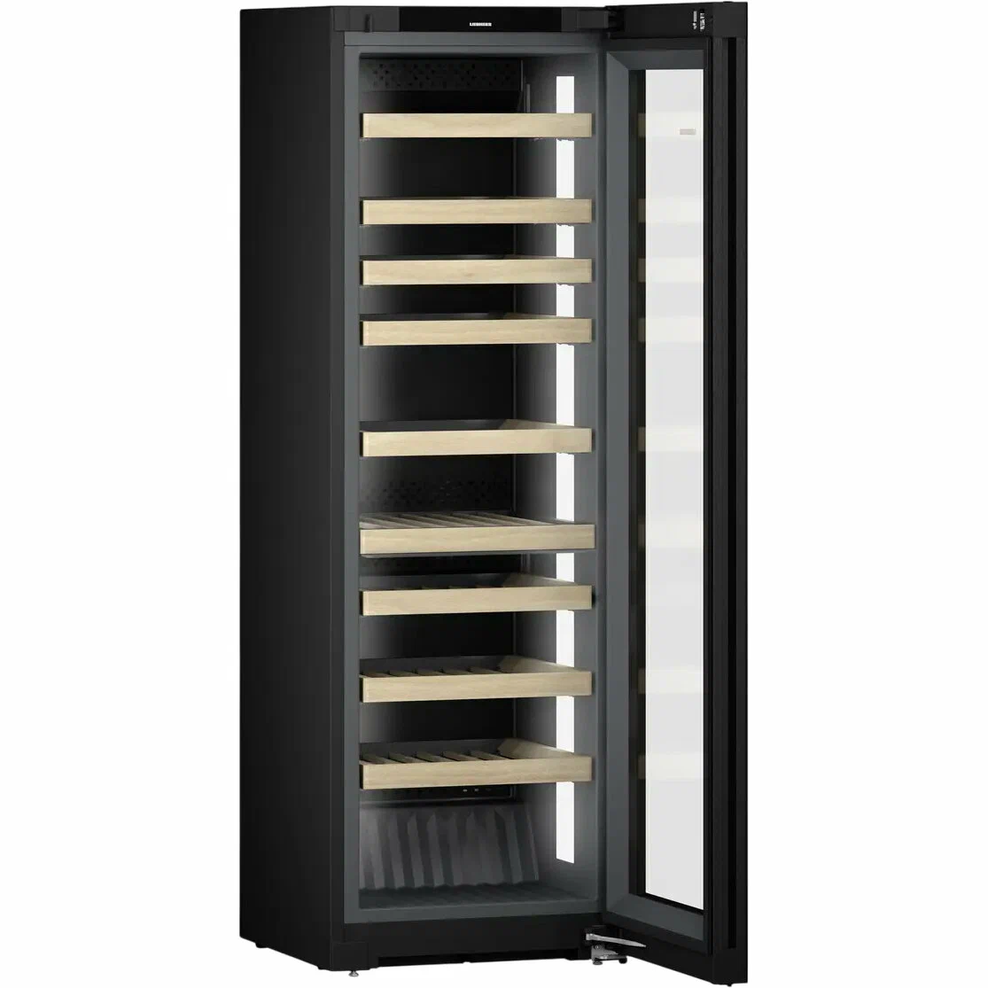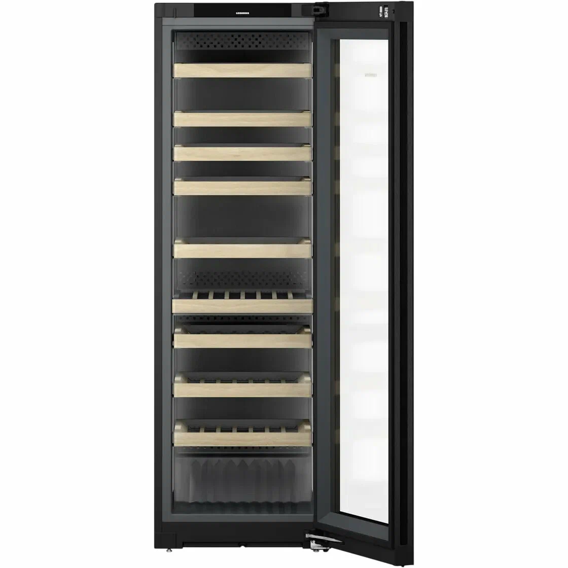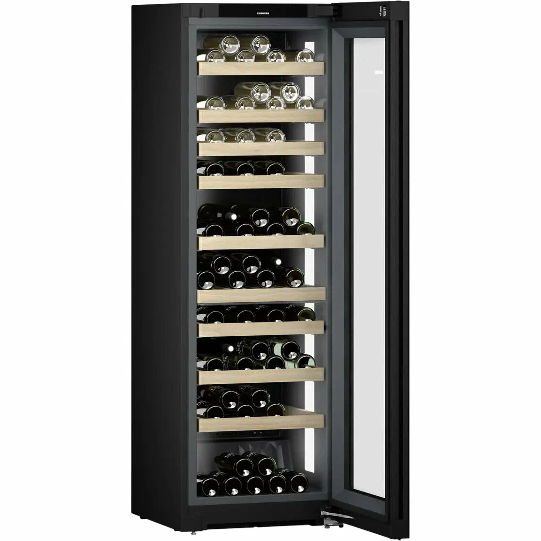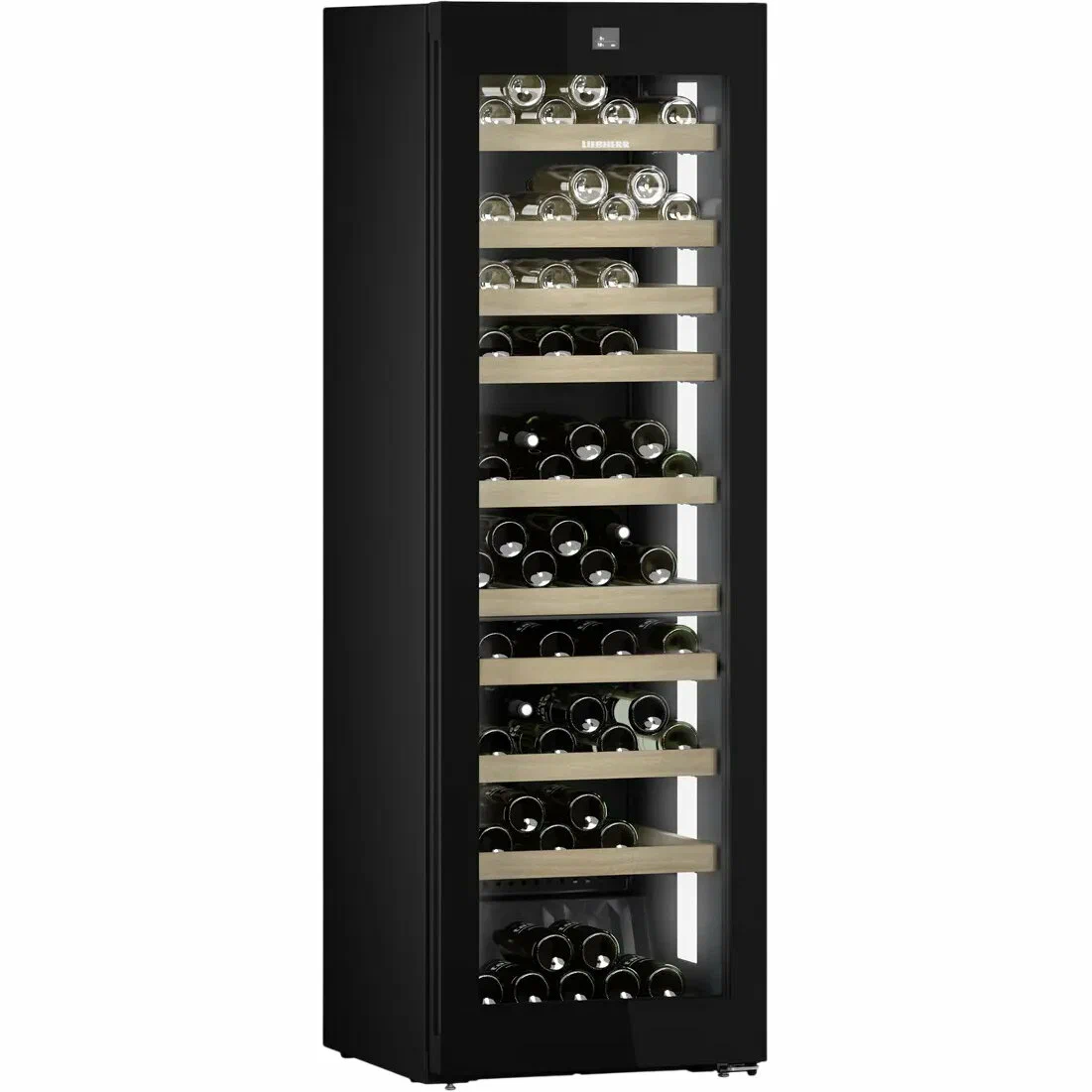 Отвечает за устранение запахов и предотвращает их появление. Сохраняет внутри свежесть воздуха. Средний срок службы фильтра составляет 6 месяцев, после чего его рекомендуется заменить. Сделать это можно самостоятельно, не обращаясь к специалисту.Сенсорный дисплей Touch&SwipeДелает управление простым и удобным. Наглядно отображает активные установки.Два независимых холодильных контураОбеспечивают точный контроль и поддержание заданной температуры в обеих зонах.Деревянные полки FlexFitБутылки размещаются горизонтально, продуманная конструкция позволяет использовать все внутреннее пространство. Из десяти полок восемь легко выдвигаются. Особый компрессор работает очень тихо (35 дБ) и предотвращает появление вибрации, которая может негативно повлиять на вина. Энергопотребление соответствует классу А.Доводчик SoftSystemОбеспечивает плавное закрывание двери при угле открывания менее 90°, исключает возможность случайно оставить шкаф открытым. Предусмотрен электронный замок eDoorLock.Особенности дизайнаВинный шкаф отличается строгим лаконичным дизайном, благодаря чему его можно вписать практически в любой современный интерьер как частного дома, так и ресторана. Дверь представляет собой стеклопакет с защитой от ультрафиолета.