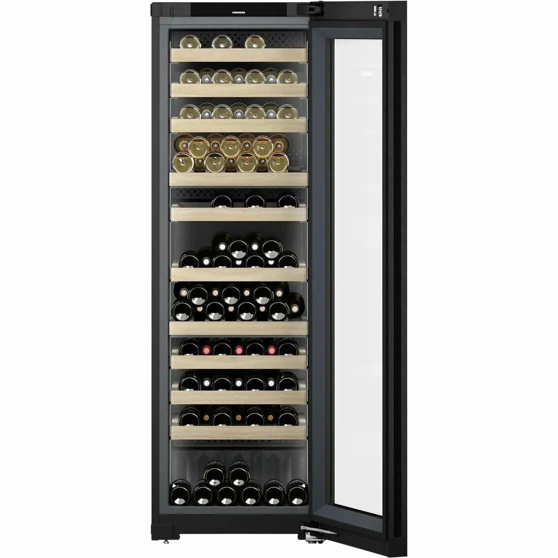 Винный шкаф WPgbi 5273 серии Vinidor Selection от Liebherr предлагает идеальные условия для хранения вина благодаря своим трем температурным зонам и возможности регулировки температурного режима. Это позволяет хранить различные виды вина при оптимальных условиях, обеспечивая их сохранность и качество. Вместительность шкафа в 358 литров позволяет разместить до 104 бутылок, что делает его отличным выбором для коллекционеров и любителей вина. Двухсторонняя световая панель с плавным изменением яркости и тихий компрессор создают комфортные условия для хранения вина, а деревянные полки из массива бука добавляют элегантности и функциональности. Стеклянная дверца с покрытием Low-E защищает вино от вредного воздействия ультрафиолетового света, что особенно важно для длительного хранения. На дисплее можно установить два уровня влажности, что предотвращает пересыхание пробок и сохраняет вкус и аромат вина. Эти особенности делают винный шкаф Liebherr надежным и стильным решением для создания идеальных условий хранения вина в домашних условиях.