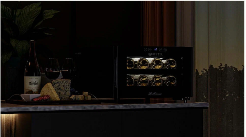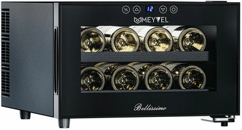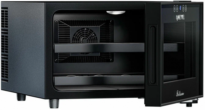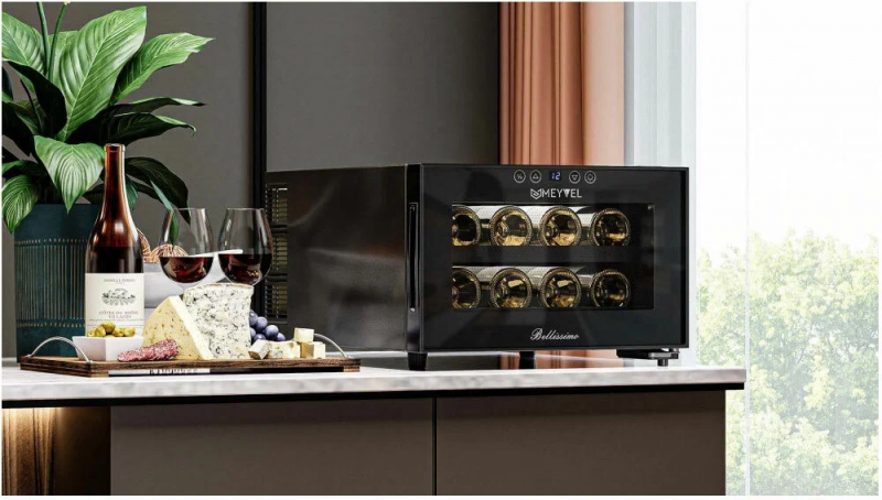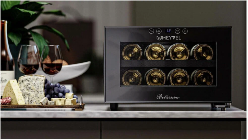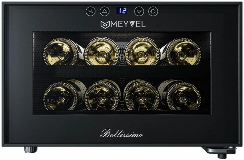Двойное стекло с защитой от прямых УФ-лучей поддерживает качественные условия хранения вина. Для размещения винных бутылок, шкаф оснащен 2 полками из хромированного металла.Храните красные, белые и игристые вина в одном месте! Данная модель поддерживает необходимый для хранения вин уровень влажности в 60-80%.Лаконичный дизайн шкафа придаёт интерьеру современный вид. В модели MV08-BF1 (easy) использовано LED освещение, которое обеспечивает подсветку полок.Современное сенсорное управление, исключает вероятность случайного нажатия. Дополнительно у данной модели шкафа предусмотрен демонстрационный режим, во время которого освещение не гаснет. Такая функция помогает демонстрировать винную коллекцию Вашим друзьям и близким. Винный шкаф MV08-BF1 (easy) - современное решение в вопросе хранения вин.Особенности:изысканный дизайн;равномерное охлаждение и качественная циркуляция воздуха;защита от УФ-излучения с помощью двойного стекла;мягкая светодиодная подсветка;современное сенсорное управление;простая система настройки уровня температуры;автоматическое размораживание;диапазон допустимых значений уровня влажности 60-80%Обратите внимание:прежде чем устанавливать винный шкаф, ознакомьтесь с указанными в инструкции показателями напряжения (В) и частоты (Гц) и убедитесь в том, что они совпадают с уровнем показателей в Вашем доме;не устанавливайте винный шкаф вблизи с нагревающимися электроприборами, а также в зоне прямого попадания солнечных лучей;в обязательном порядке оставьте зазор 10 см с каждой стороны от винного шкафа, а в случае, если над ним размещены какие-либо предметы, зазор между ними и верхней частью винного шкафа должен составлять не менее 10 смОбщие данные:Размеры:высота: 27,5 смширина: 41 смглубина: 51,5 смОбъем, л: 23Максимальное количество бутылок: 8Тип управления: электронныйКласс энергоэффективности: BКлиматический класс: SN (от +10°C до +32°C)Энергопотребление, кВт/год: 144,5Количество температурных зон: 1Диапазон температуры, °C: от +7 до +18Тип системы охлаждения: ТермоэлектрическийВинное отделение:Количество полок: 2Тип полок: ВыдвижныеМатериал полок: ХромированныеВид охлаждения: ДинамическийДемонстрационное освещениеДополнительная информация:Материал корпуса: стальЦвет корпуса: ЧёрныйСтекло: Двойное с УФ-фильтромТип управления: СенсорныйПамять настроекДиапазон влажности, %: 60-80Уровень шума, дБ: 30