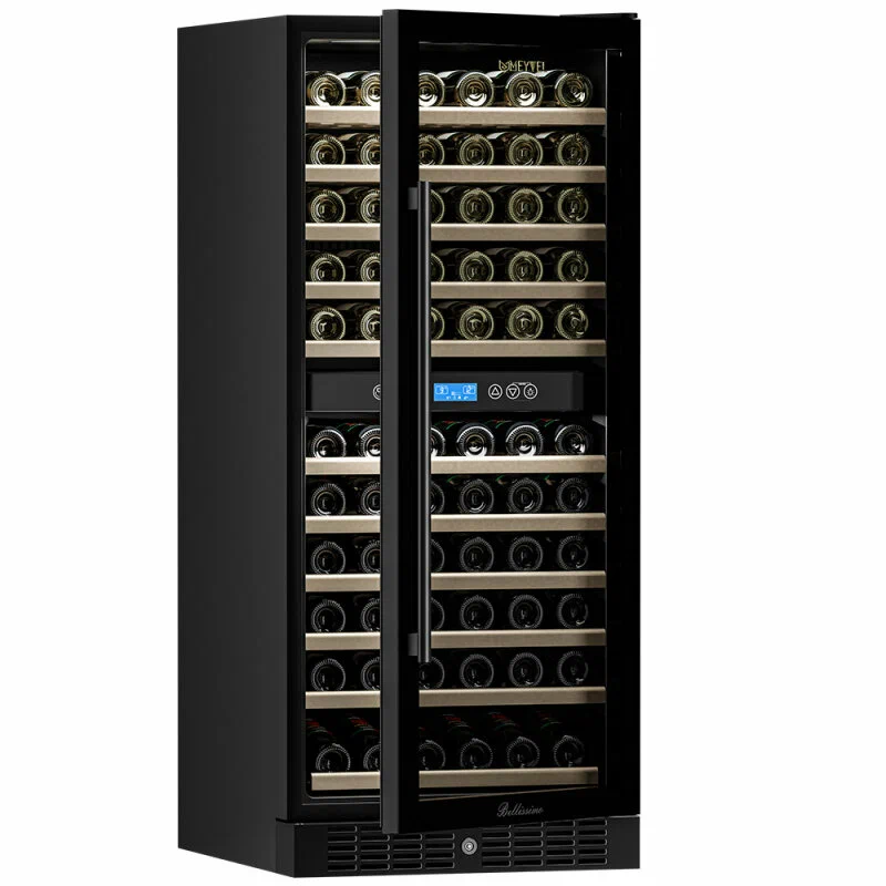 Модель MV116-KBT2 имеет привлекательный внешний вид, сочетающий в себе неподвластное времени очарование натуральных материалов с высокотехнологичными системами сохранения продуктов. Винный холодильник Meyvel MV116-KBT2 оснащен дверью с защитой от ультрафиолетовых лучей и отлично подойдет для хранения и созревания различных сортов вин. Динамическая система охлаждения обеспечивает оптимальную температуру для вина и сохраняет необходимую влажность внутри камеры.Особенности:Универсальный микроклиматКомпрессорный винный шкаф Meyvel MV116-KBT2 обладает большой вместимостью и способен разместить до 116 бутылок. Располагаются они на полках из массива бука. Внутреннее пространство шкафа разделено на 2 температурные зоны с возможностью настраивать каждую из них: диапазон нижней зоны от 10C до 18C, а верхней - от 5C до 10C. Холодильник поддерживает влажность в диапазоне 60-80, как в настоящем винном погребе.Удобная установка и управлениеБыстро задавайте необходимую температуру для содержимого и управляйте всеми функциями холодильника с помощью интуитивно-понятного расположения кнопок на сенсорном дисплее. Так же, эта модель имеет возможность регулировать ножки по высоте, что позволяет установить шкаф в любое удобное место на Вашей кухне.Преимущества:Вместимость 116 бутылок 0,75 л;Две температурные зоны;Общий температурный диапазон от 5C до 18C;Память настроек;Удобное сенсорное управление;Автоматическая разморозка;Тройное стекло с УФ-фильтром;Наличие двух полок с увеличенным пространством, для размещения нестандартных бутылок;Стальной чёрный корпус;Можно установить шкаф отдельно или встроить в колонну;Возможность регулировать ножки;Выдвижные полки из массива бука.Важно:- прежде чем устанавливать винный шкаф, ознакомьтесь с указанными в инструкции показателями напряжения (В) и частоты (Гц) и убедитесь в том, что они совпадают с уровнем показателей в Вашем доме;- не наклоняйте винный шкаф более чем на 45;- не устанавливайте винный шкаф вблизи с нагревающимися электроприборами, а также в зоне прямого попадания солнечных лучей;- после установки винного шкафа необходимо проверить, насколько ровно Вы настроили ножки, потому как использование винного шкафа, установленного под углом, может привести к поломке дверцы.Общие данные:Размеры:высота: 139,7 смширина: 59,5 смглубина: 68 смОбъем, л: 322Максимальное количество бутылок: 116Тип управления: электронныйКласс энергоэффективности: BКлиматический класс: SN-T (от 10C до 43C)Энергопотребление, кВт/год: 183Количество температурных зон: 2Диапазон температуры верхней зоны, C: от 5 до 10Диапазон температуры нижней зоны, C: от 10 до 18Тип системы охлаждения: компрессорныйВинное отделение:Количество полок: 11Тип полок: ВыдвижныеМатериал полок: Дерево (массив бука)Угольный фильтрLED освещениеВид охлаждения: динамическоеАвтоматическая разморозкаДемонстрационное освещениеДополнительная информация:Тип управления: СенсорныйТермостат: электронныйУровень шума, дБ: 45Тип установки: Встраиваемый, ОтдельностоящийТип встраивания: В нишуВстроенная система вентиляцииДиапазон влажности, : 60-80Материал корпуса: стальЦвет корпуса: ЧёрныйРегулируемые ножкиПеренавешиваемая дверьСтекло: тройное с УФ-фильтромРамка двери: ЧёрнаяРучка двери: ЧёрнаяЗамок двериЗимний РежимПамять настроекХладагент: R600AРазмер двери (ВхШ), мм: 1275 х 593Минимальный разм