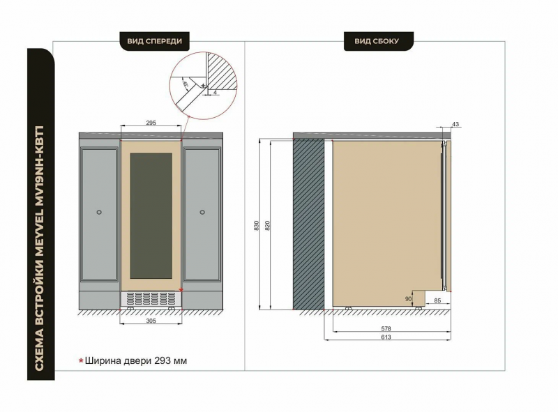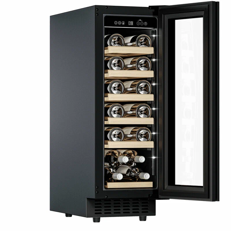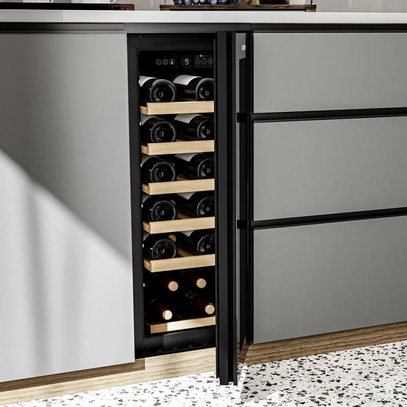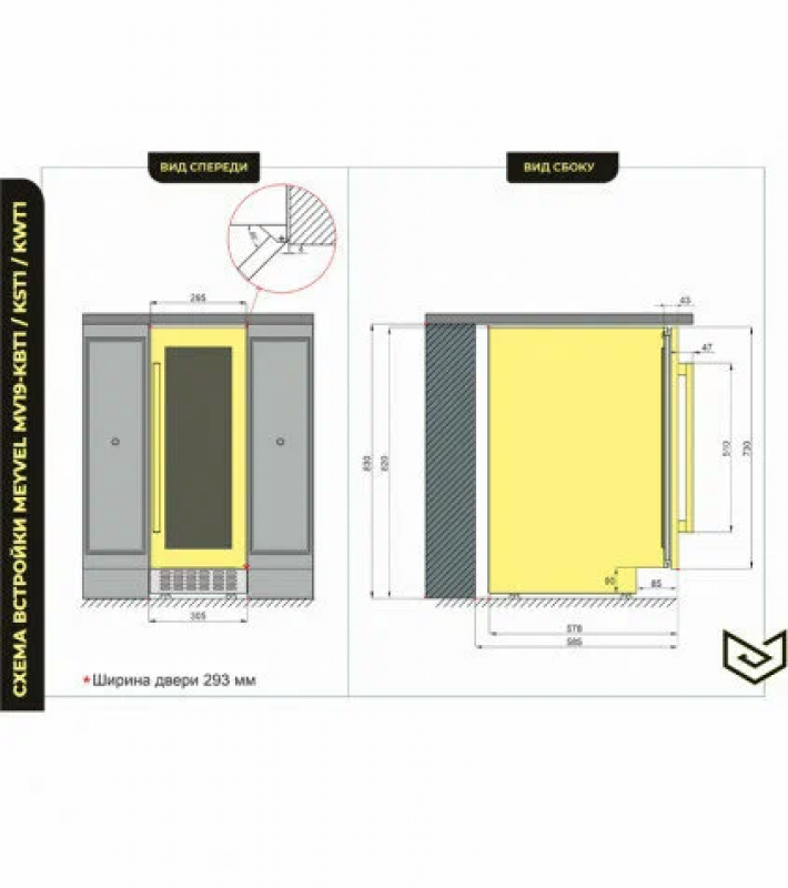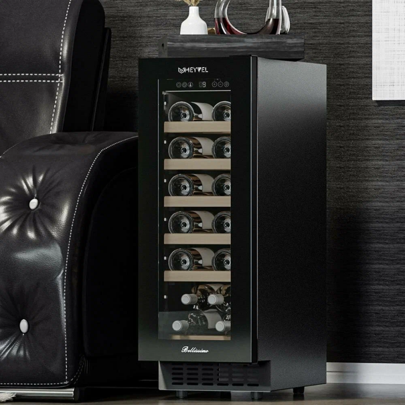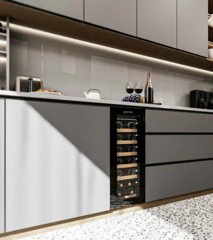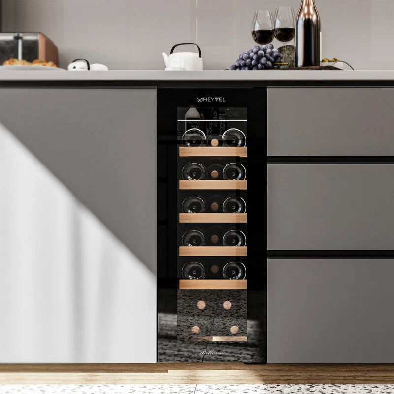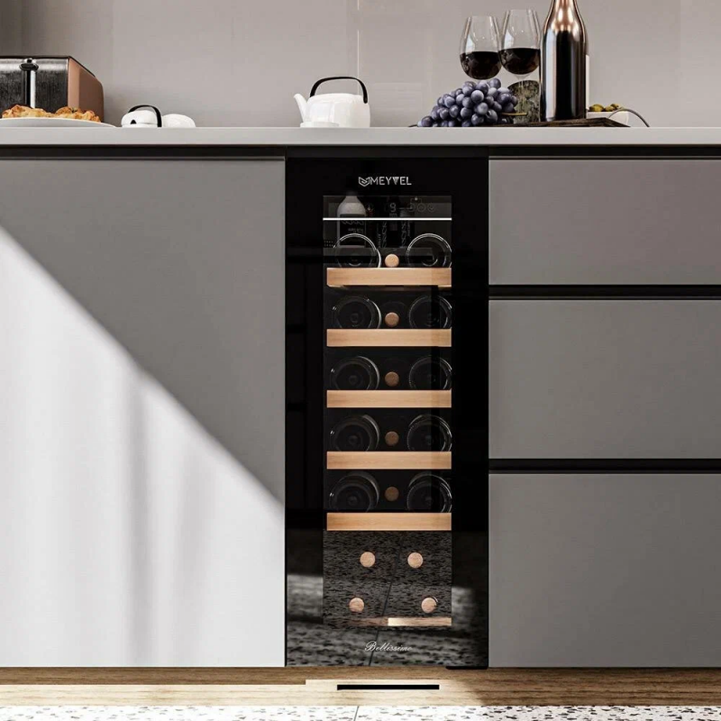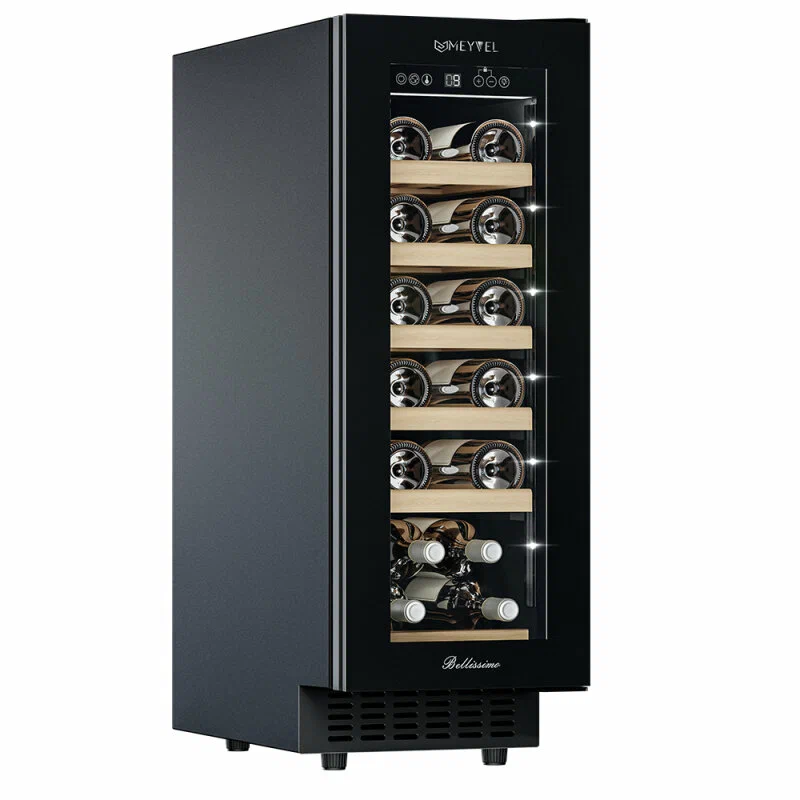 Модель MV19NH-KBT1 имеет привлекательный внешний вид, сочетающий в себе неподвластное времени очарование натуральных материалов с высокотехнологичными системами сохранения продуктов. Винный холодильник Meyvel MV19NH-KBT1 оснащен дверью с защитой от ультрафиолетовых лучей и отлично подойдет для хранения и созревания различных сортов вин. Динамическая система охлаждения обеспечивает оптимальную температуру для вина и сохраняет необходимую влажность внутри камеры.Универсальный микроклиматКомпрессорный винный шкаф Meyvel MV19NH-KBT1 обладает оптимальной вместимостью и даёт возможность разместить до 19 бутылок стандартного типа Бордо (0,75 л). Располагаются они на выдвижных полках из дерева. Внутреннее пространство шкафа поддерживает комфортную для вина температуру от 5C до 20C. Так же, эта модель поддерживает влажность в диапазоне 60-80, как в настоящем винном погребе.Сенсорный дисплейБыстро задавайте необходимую температуру для содержимого и управляйте всеми функциями холодильника с помощью интуитивно-понятного расположения клавиш на сенсорном дисплее.Комфортное расположениеMeyvel MV19NH-KBT1 отлично подходит для расположения на любой кухне, модель имеет утопленную в дверце ручку, что придаёт встроенному шкафу более гармоничный вид. Шкаф можно встроить под столешницу, а так же, перенавесить дверь для более удобного использования (петли входят в комплект).Особенности:Возможность как встроить шкаф под столешницу, так и установить отдельно;Углубленный цоколь;Температурный режим от 5C до 20C;Удобное сенсорное управление;Электронный термостат;Демонстрационное освещение;Панорамное освещение;Перенавешиваемая дверь (петли в комплекте);Регулируемые ножки;Тройное стекло с УФ-фильтром;Выдвижные полкиОбратите внимание:прежде чем устанавливать винный шкаф, ознакомьтесь с указанными в инструкции показателями напряжения (В) и частоты (Гц) и убедитесь в том, что они совпадают с уровнем показателей в Вашем доме;не наклоняйте винный шкаф более чем на 45;не устанавливайте винный шкаф вблизи с нагревающимися электроприборами, а также в зоне прямого попадания солнечных лучей;необходимо установить винный шкаф по уровню и отрегулировать зазоры между дверью и мебельным фасадом, чтобы не повредить их.Общие данные:Размеры:высота: 82 смширина: 29,5 смглубина: 57,8 смОбъем, л: 58Максимальное количество бутылок: 19Тип управления: электронныйКласс энергоэффективности: AКлиматический класс: N-ST (от 16C до 38C)Энергопотребление, кВт/год: 108Количество температурных зон: 1Диапазон температуры, C: от 5 до 20Тип системы охлаждения: КомпрессорныйВинное отделение:Количество полок: 6Материал полок: Дерево (массив бука)Тип полок: Выдвижные, Мини-полкаВид охлаждения: ДинамическийДемонстрационное освещениеЦвет освещения: Белый/Синий/ЯнтарныйПанорамное освещениеУгольный фильтрДополнительная информация:Установка: Встраиваемая, ОтдельностоящаяВстроенная система вентиляцииМатериал корпуса: стальЦвет корпуса: ЧёрныйРамка двери: ЧёрныйПеренавешиваемая дверьСтекло: Тройное с УФ-фильтромТип управления: СенсорныйСигнализация открытой двериСигнализация отклонения температурыБлокировка панели управленияРежим Эко ДемоПамять настроекДиапазон влажности, : 60-80Углублённый цокольРегулируемые ножкиУровень шума, дБ: 40Хладагент: R600A