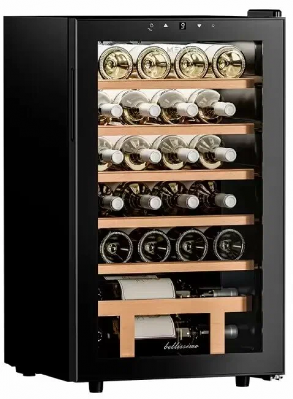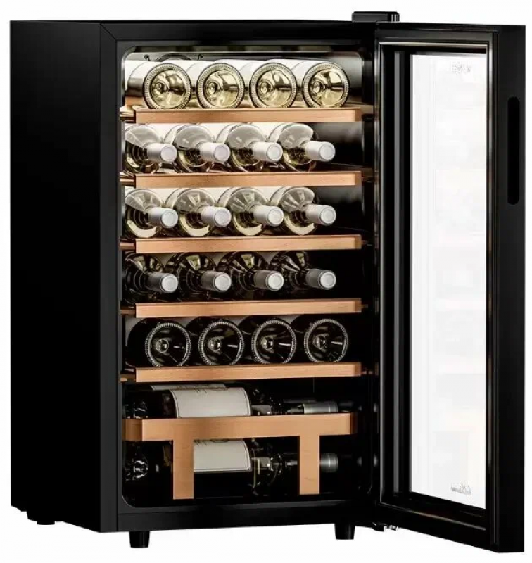 Винный шкаф Meyvel MV24-KBF1 — это профессиональное решение для хранения вашей коллекции вин в идеальных условиях. Элегантный дизайн с черным фасадом и стеклянной дверью прекрасно впишется в любой интерьер кухни, гостиной или столовой.Шкаф оснащен цифровой системой управления температурой, позволяющей точно поддерживать заданные параметры от 5°C до 18°C. Двухзонное охлаждение обеспечивает оптимальные условия для разных типов вин: красных, белых, игристых и розовых. Система вентиляции равномерно распределяет холодный воздух, предотвращая образование теплых зон.Вместительные хромированные полки из закаленного стекла выдерживают вес до 25 кг каждая. Специальная УФ-защита на стеклянной двери блокирует вредное солнечное излучение, сохраняя вкусовые качества и аромат напитков. Тихая работа компрессора и низкое энергопотребление делают эксплуатацию комфортной и экономичной.Идеально подходит для длительного хранения коллекционных вин, охлаждения напитков к ужину или организации домашнего винного погрека. Вместимость 24 бутылки стандартного размера позволяет разместить разнообразную коллекцию. Система защиты от замерзания предотвращает порчу напитков при перепадах напряжения.Дополнительные преимущества: автоматическое отключение при перегреве, светодиодная подсветка внутреннего пространства, реверсивные дверные петли для удобства установки. Гарантированно поддерживает оптимальную влажность 50-80%, что обеспечивает правильное состояние пробок и сохранность вина на протяжении многих лет.