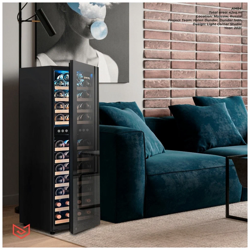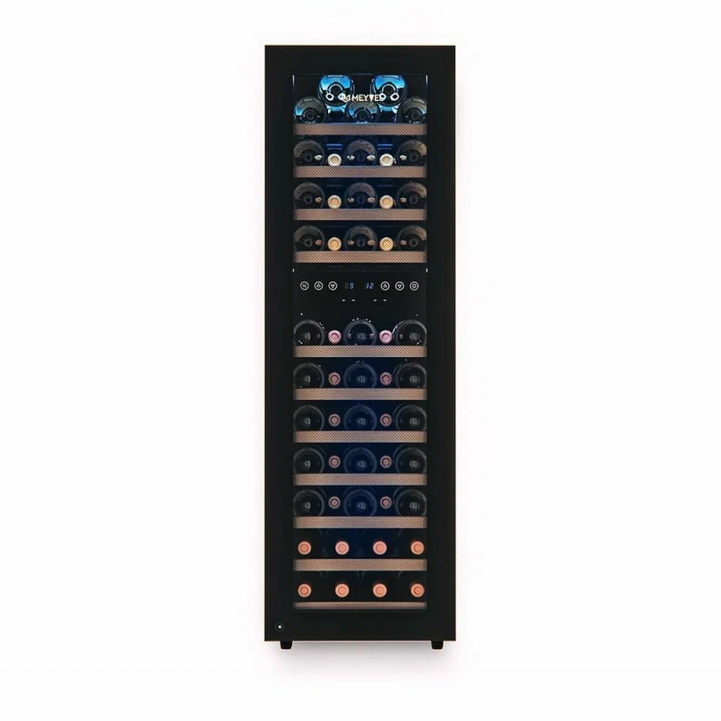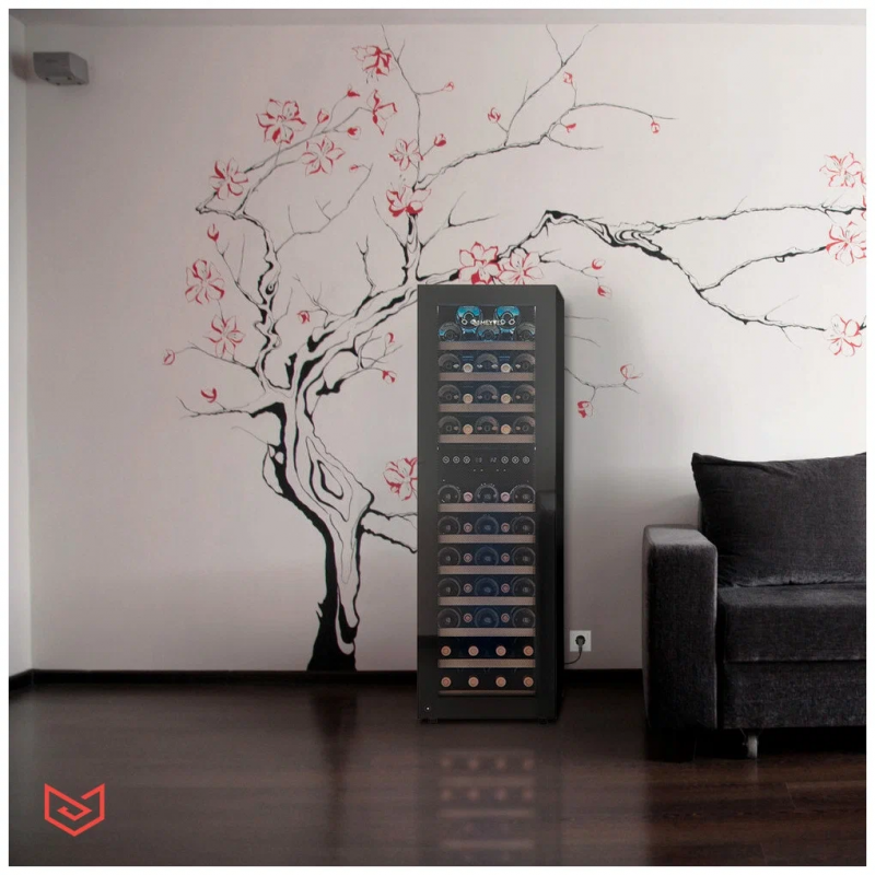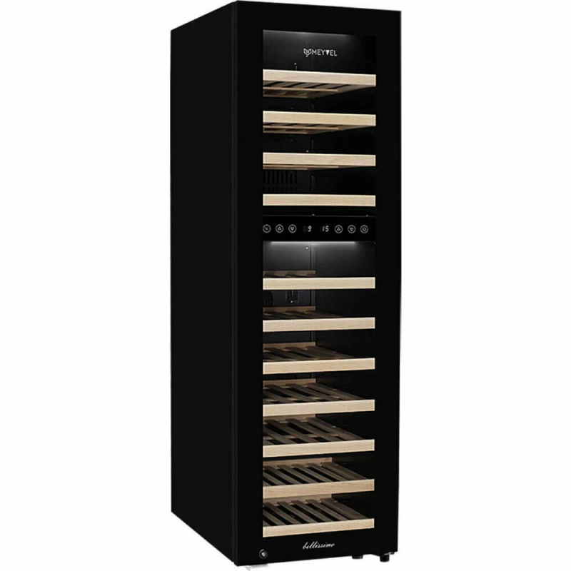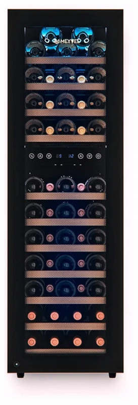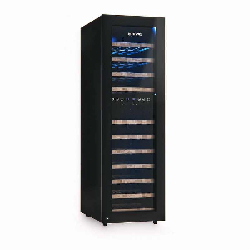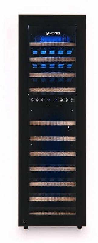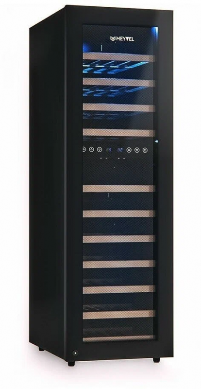 Современный винный шкаф MV53-KBF2 инновационное решение проблемы качественного хранения вина. Расширенная функциональность, изысканный дизайн, полноценная имитация условий винного погреба всё это винный шкаф MV53-KBF2.Лаконичный дизайн.Изысканный дизайн модели делает её абсолютным выбором большинства:корпус MV53-KBF2 выполнен из стали окрашенной в чёрный цвет, стекло с шелкографией полностью покрывает дверь. Современная технология освещения позволит Вам в любое время эффектно продемонстрировать Вашу винную коллекцию гостям. Каждая деталь модели гармонично дополняет друг друга, делая винный шкаф универсальным под любые стили интерьера.Продуманное внутреннее пространство.Благодаря продуманному внутреннему исполнению и съемным полкам Вы сможете размещать бутылки любого объема. Внутреннее пространство рассчитано на хранение до 53 бутылок типа Бордо (0,75 л). При желании можно извлечь несколько полок и разместить большее количество бутылок. Габариты модели позволяют разместить ее максимально функционально в любой зоне: кухне, столовой, гостиной.Для размещения винных бутылок, шкаф оснащен 11 крепкими полками из массива бука: выдвижные (9), выдвижные полуполки (2). Винные бутылки, расположенные внутри шкафа, надежно защищены от вредоносных ультрафиолетовых лучей двойным стеклом, установленным в дверцу. В нижней части винного шкафа установлен съемный резервуар для воды, который предназначен для эффективного поддержания уровня влажности.Технологичность.Равномерное охлаждение содержимого шкафа достигается благодаря качественной циркуляции воздуха. С помощью современной сенсорной панели управления Вы сможете быстро и легко управлять всеми функциями шкафа. Практически бесшумная работа винного шкафа Meyvel MV53-KBF2 достигается благодаря установленному современному и энергоэффективному компрессору. Модель оснащена многоступенчатой системой гашения вибраций, обеспечивая полный покой Вашей винной коллекции.Для того, чтобы циркуляция воздуха была максимально качественной и равномерной, необходимо размещать бутылки с вином так, чтобы они не соприкасались со стенкой испарителя, для этого на полках установлены ограничительные бортики.Отсутствие посторонних запахов внутри модели MV53-KBF2 обеспечивается подбором качественных материалов, а также сменным угольным фильтром. Удобный балансировочный механизм позволяет произвести установку в максимально быстрые сроки.Особенности:Вместительность до 53 бутылок типа Бордо (0, 75л);Изысканный дизайн, стальной корпус в черном цвете;Равномерное охлаждение и качественная циркуляция воздуха;Инновационный компрессор, низкий уровень шума;Низкий уровень вибрации;Балансировочный механизм, упрощающий процесс монтажных работ;Защита от УФ-излучения с помощью двойного стекла;Мягкая светодиодная подсветка;Современное сенсорное управление;Простая система настройки уровня температуры;Автоматическое размораживание;Возможность закрывания дверцы на замок;Диапазон допустимых значений уровня влажности 50-80;Угол открытия двери 200Общие данные:Размеры:высота: 127,5 смширина: 39,5 смглубина: 58 смОбъем: 160 лМаксимальное количество бутылок: 53Тип управления: электронныйКлиматический класс: SN-T (от 10С до 43С)Класс энергопотребления: BГодовое потребление энергии: 197 кВтчКоличество температурных зон: 2Диапазон темпе